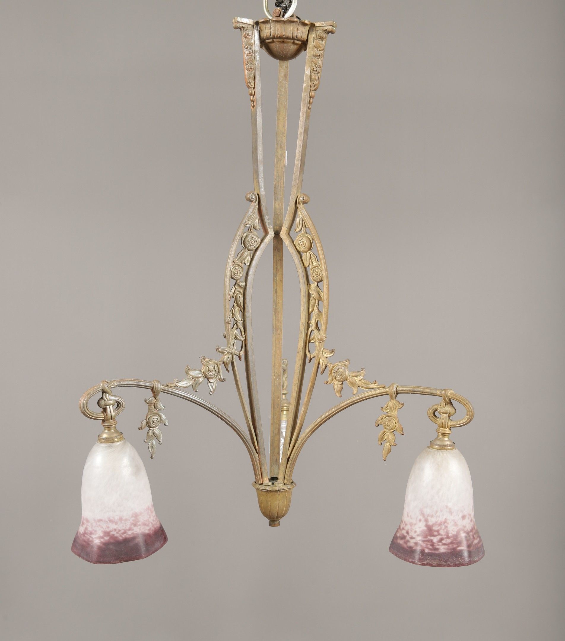 An Art Deco period 3-light chandelier in regula and marmorat…