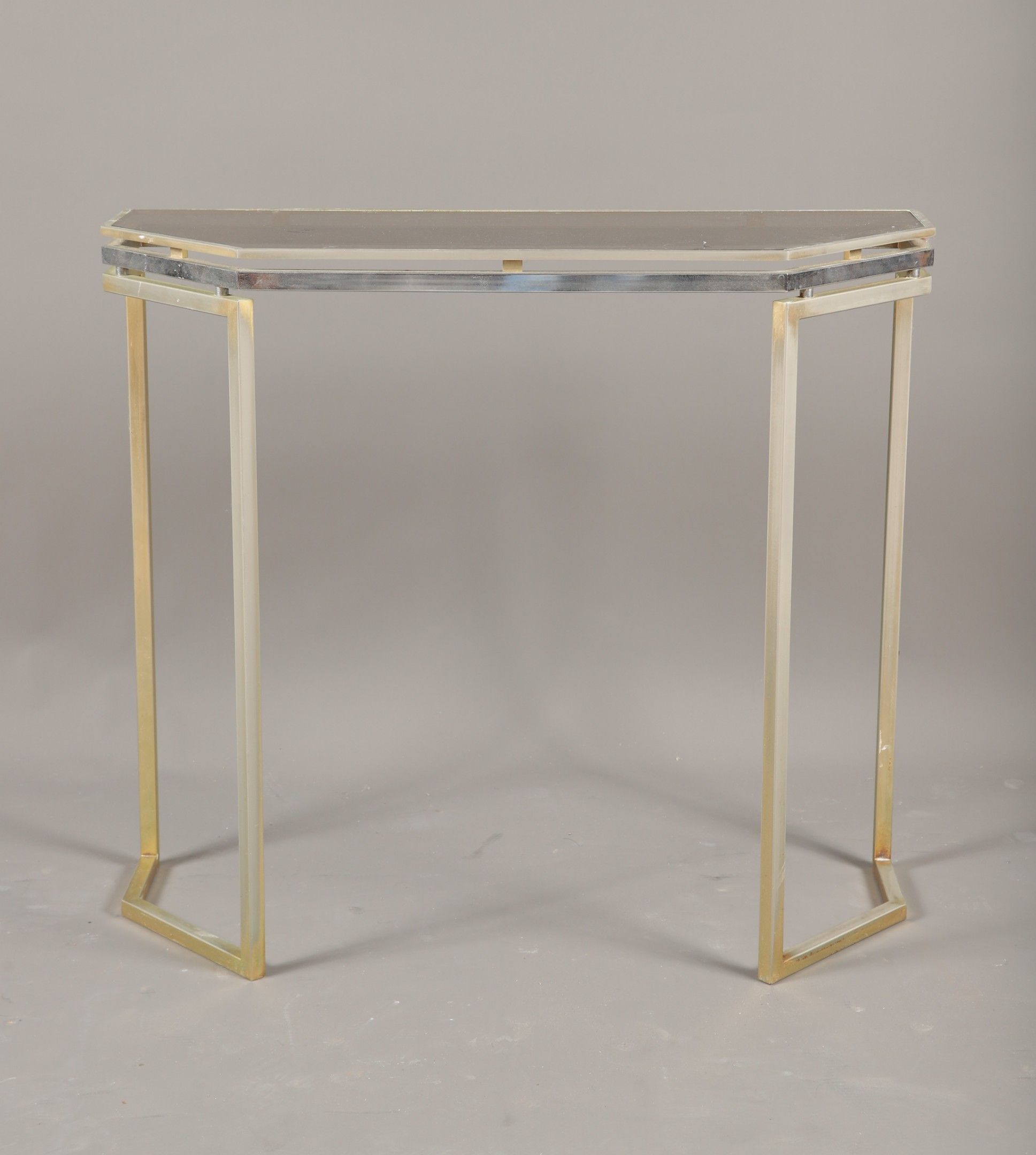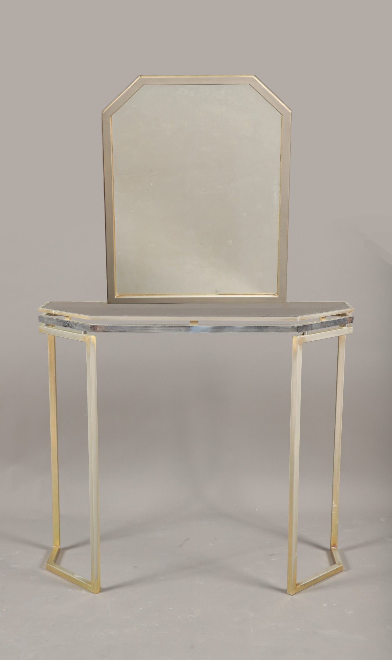 CONSOLE and mirror in chromed metal and brass from the 1970s…