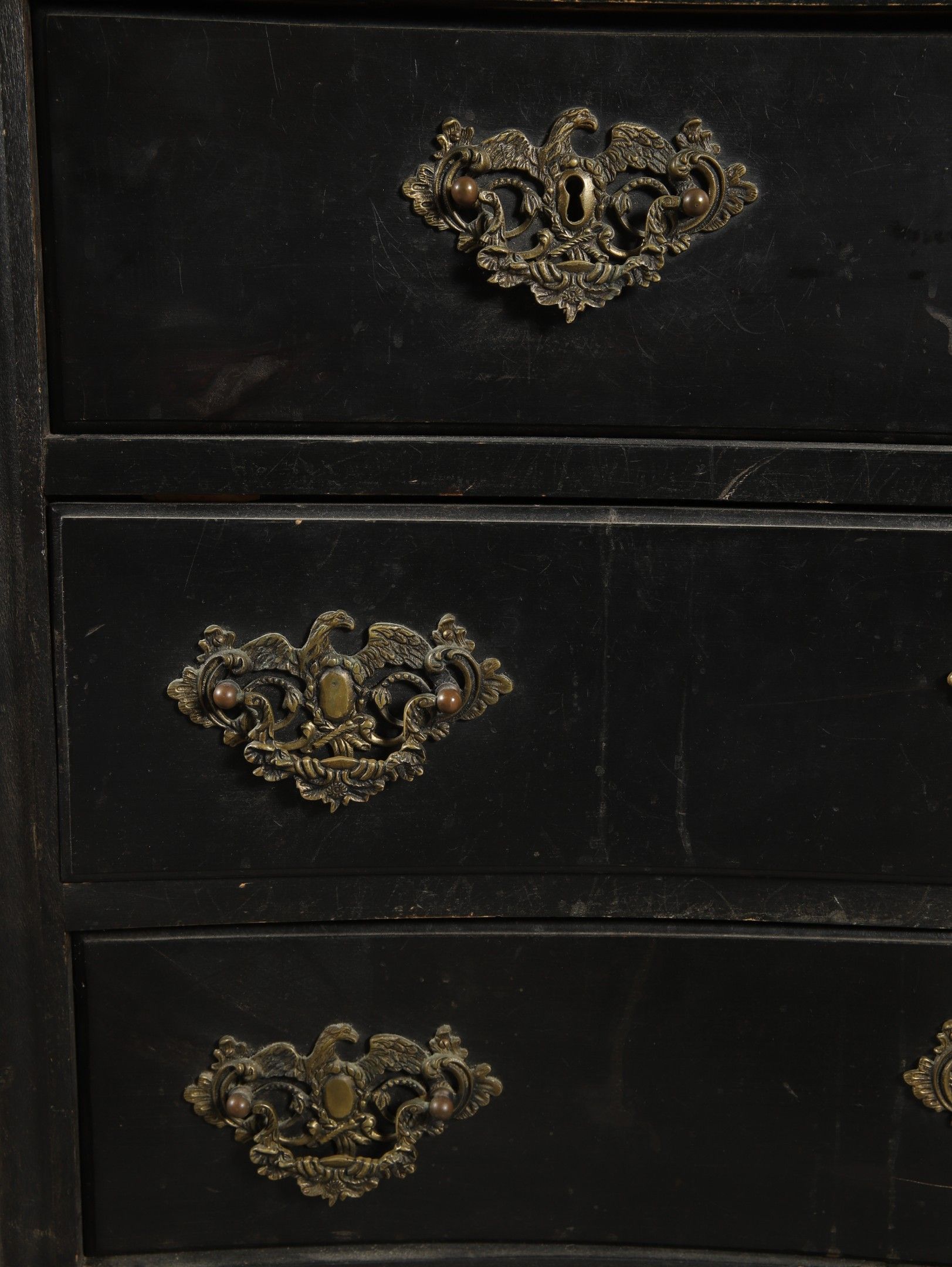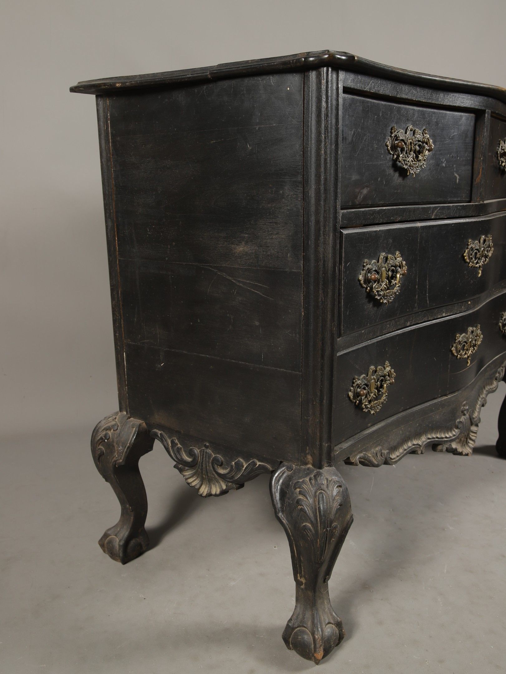 Baroque-style blackened wood PORTUGUESE COMMODE with curved …