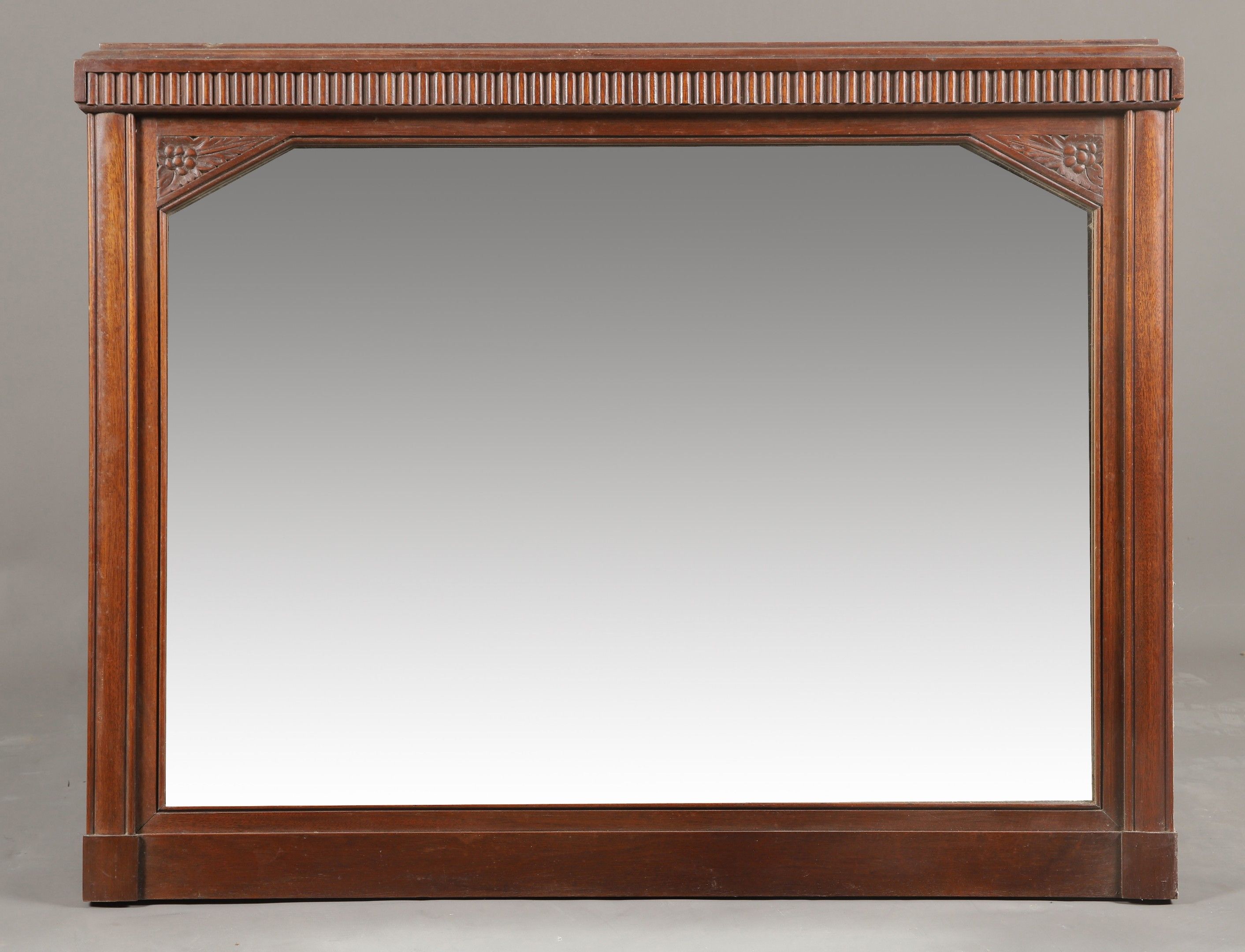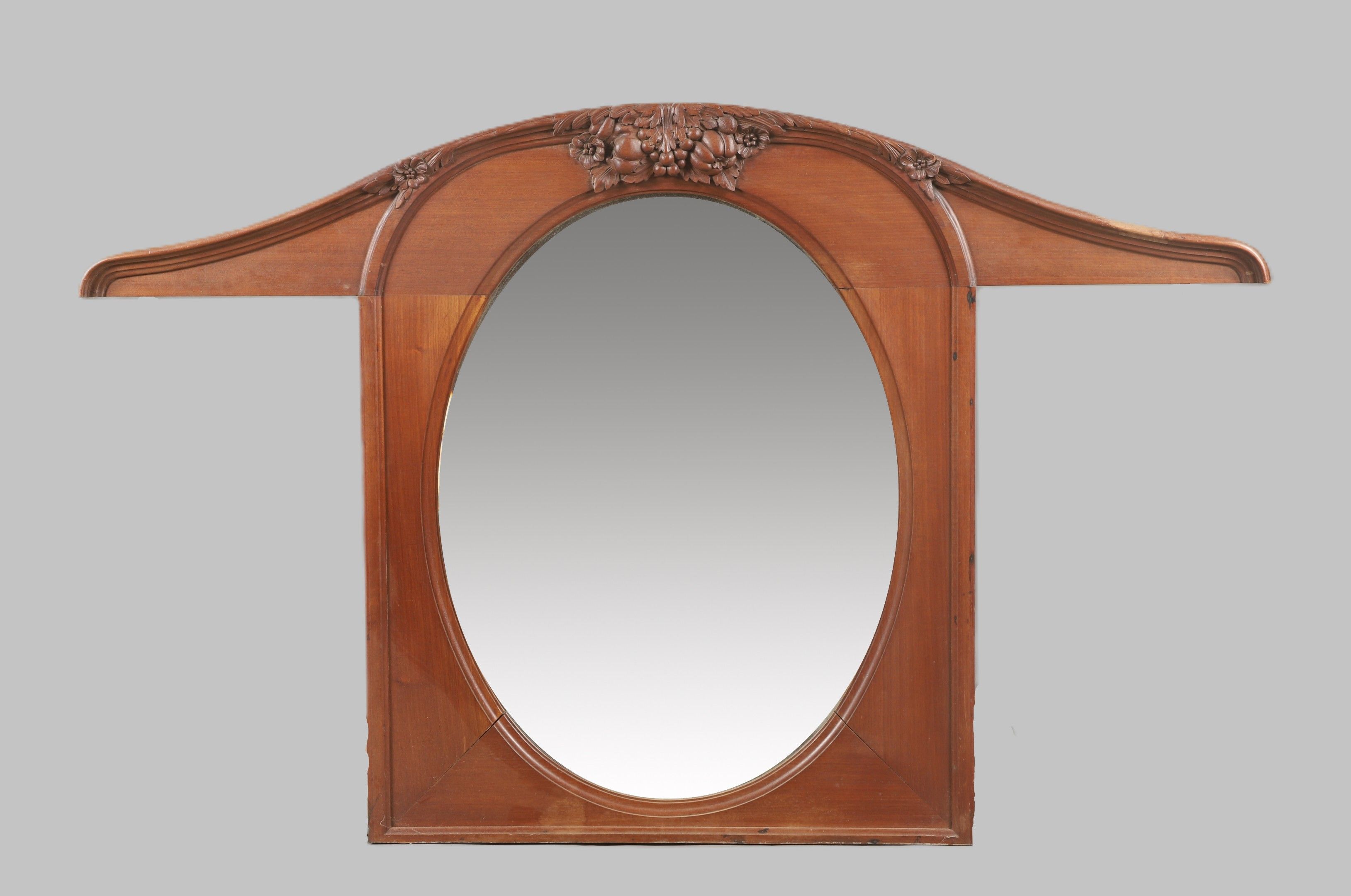 1) Art Deco period carved and moulded oak MIRROR. 86 x 111 cm. 2) Gilded and silvered wood mirror. 78 x 57 cm. 3) Art Deco period mirror in carved mahogany. 98 x 156 cm. 4) Carved mahogany Art Deco period paneled mirror.