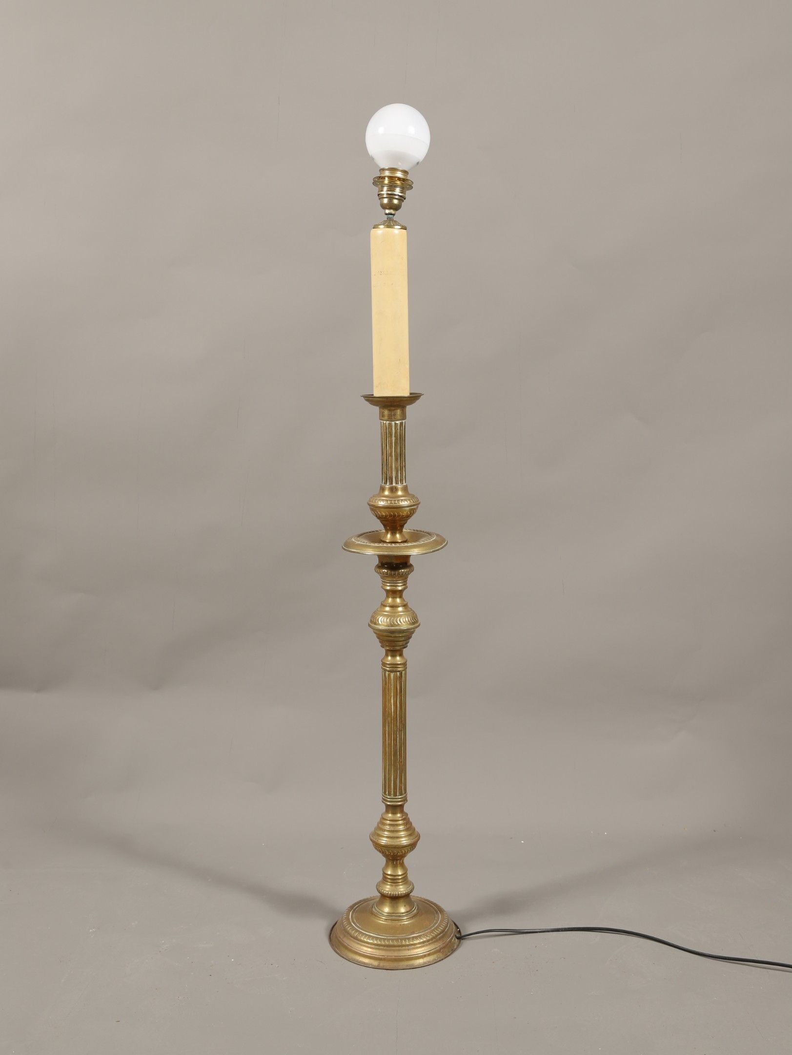 IMPORTANT Dutch brass FLAMBEAU mounted as a lamp. Height: 87 cm