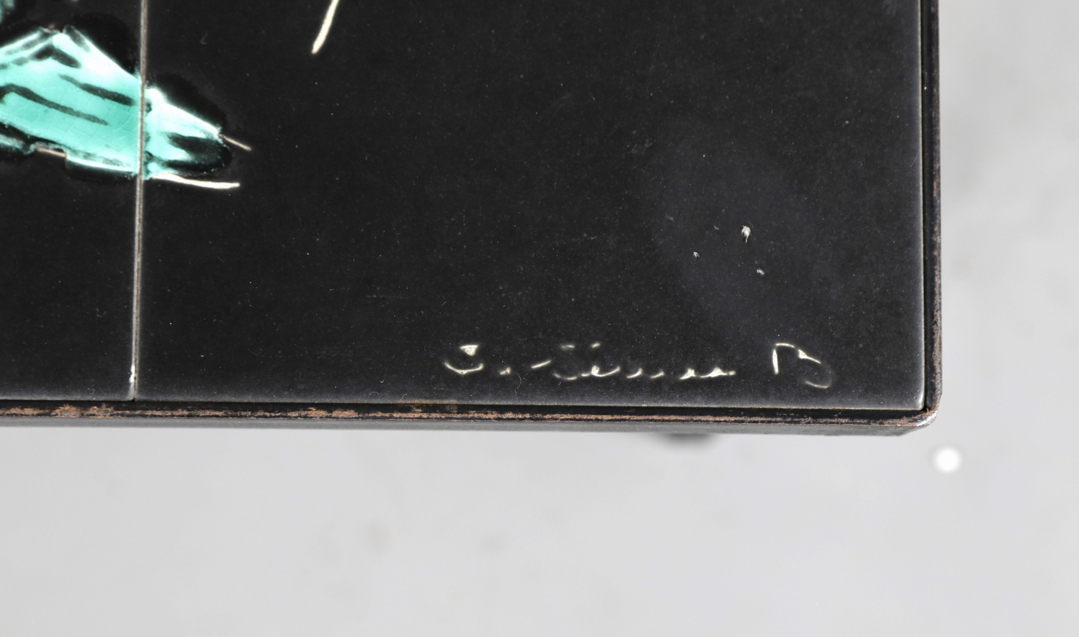 Wrought iron LOW TABLE circa 1970, tiled top signed S.