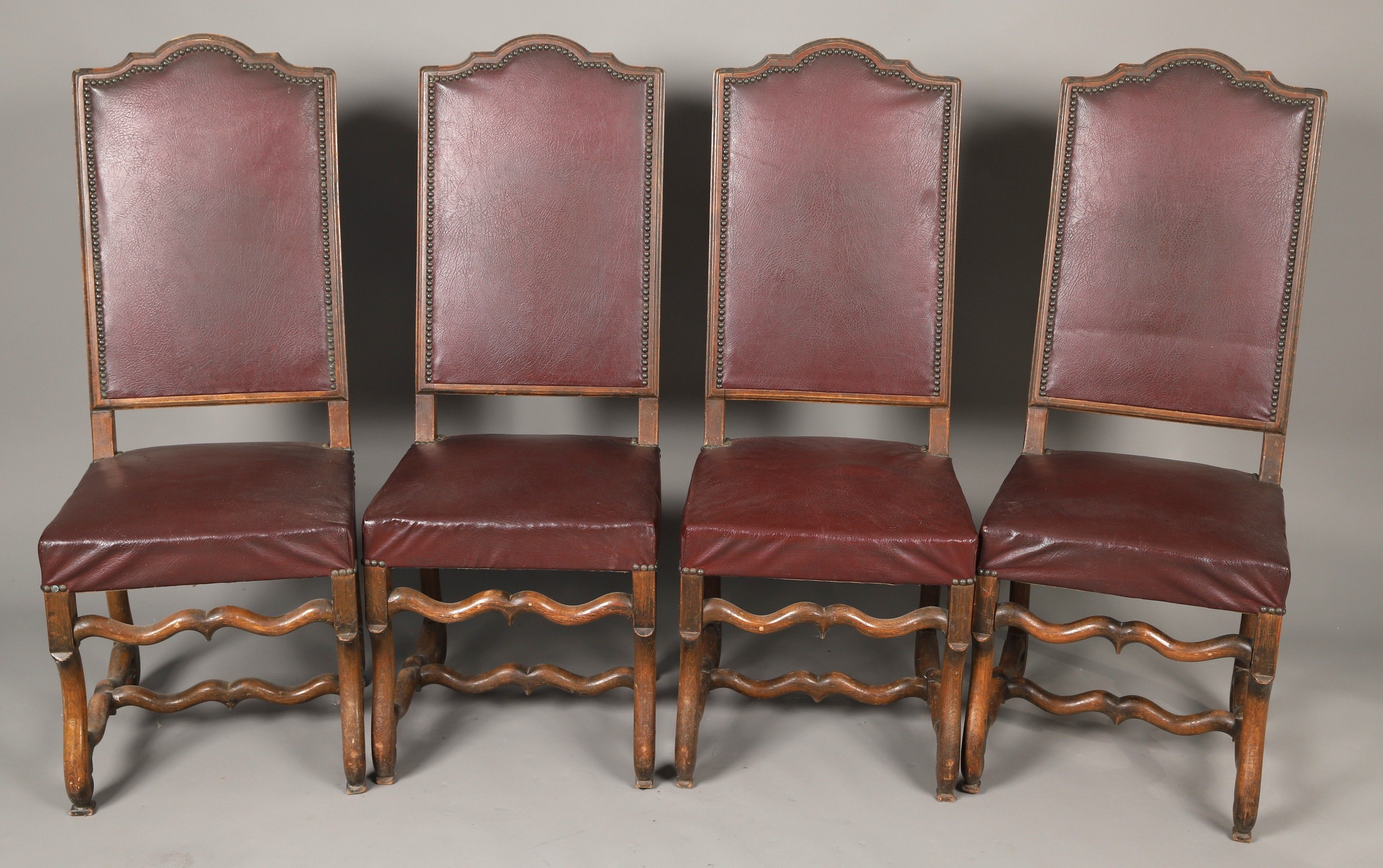 SET of FOUR Louis XIV style chairs in natural wood with sheepsbone legs. Height: 115 cm
