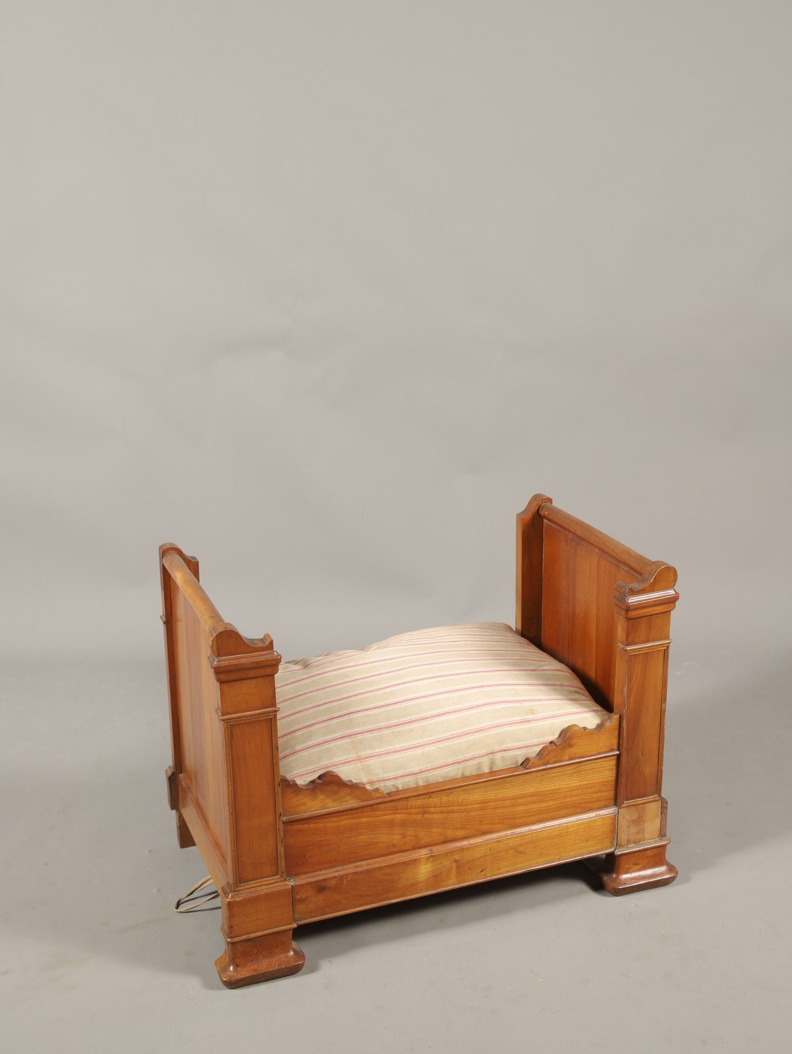 19th century cherrywood doll's scroll bed. 51 x 70 x 41 cm (missing)