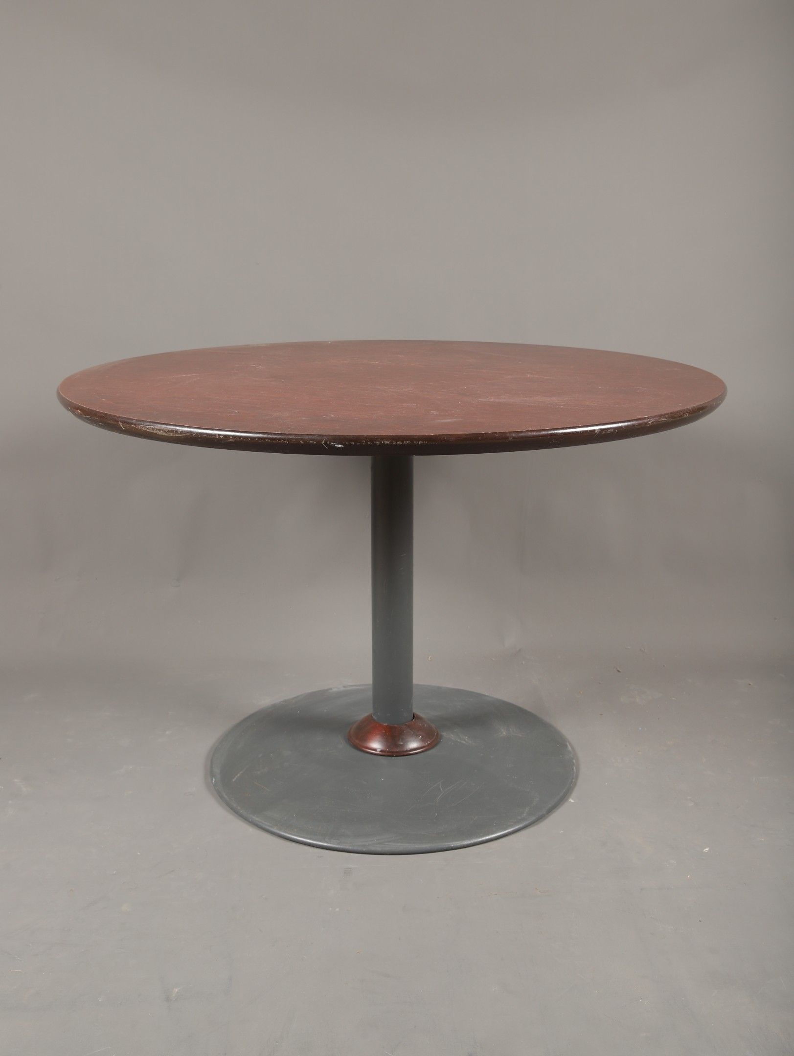 DESIGN. 1) Oak veneered GUERIDON on metal shaft and base.