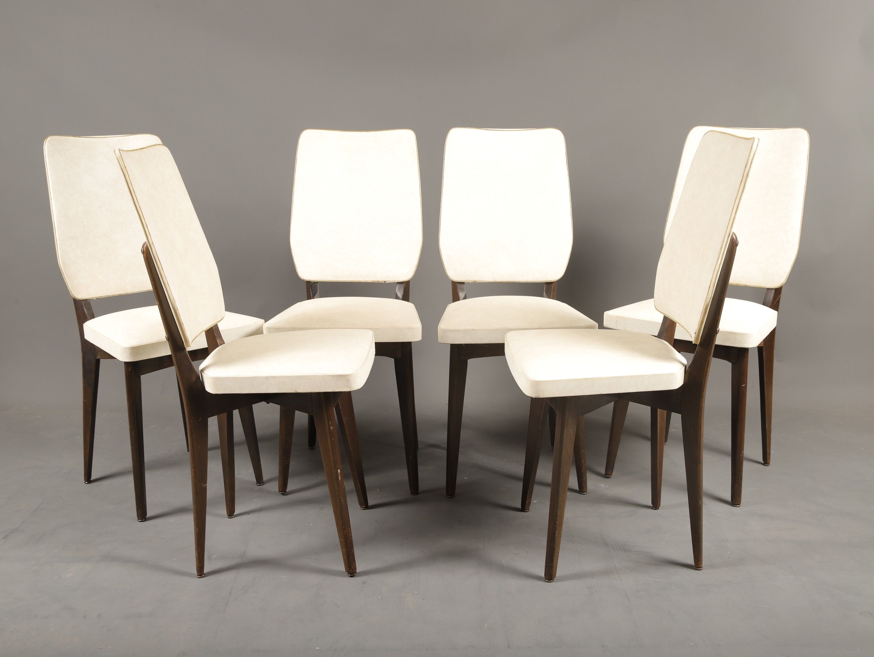 SET OF SIX DINING ROOM CHAIRS upholstered in skai, circa 197…