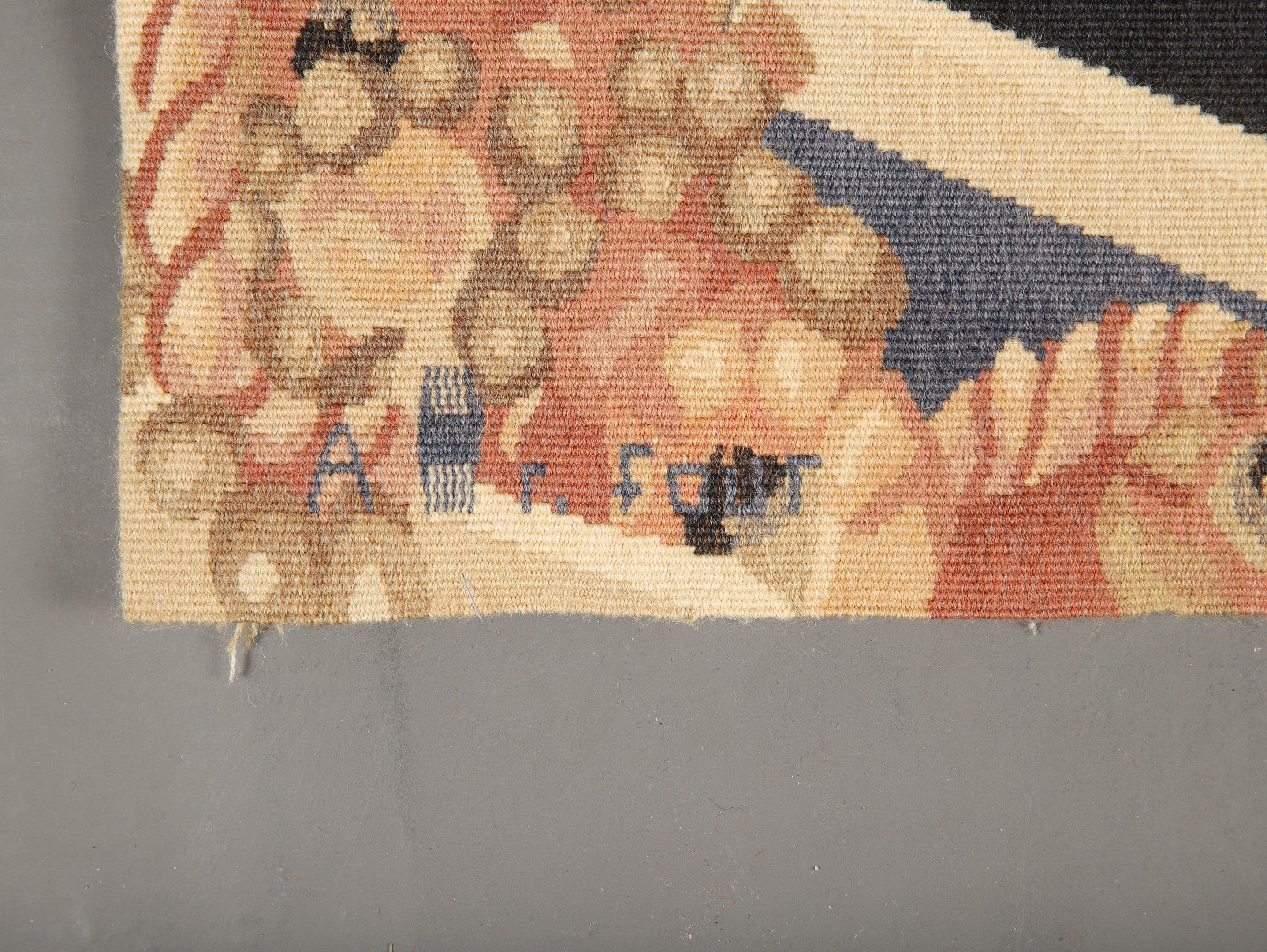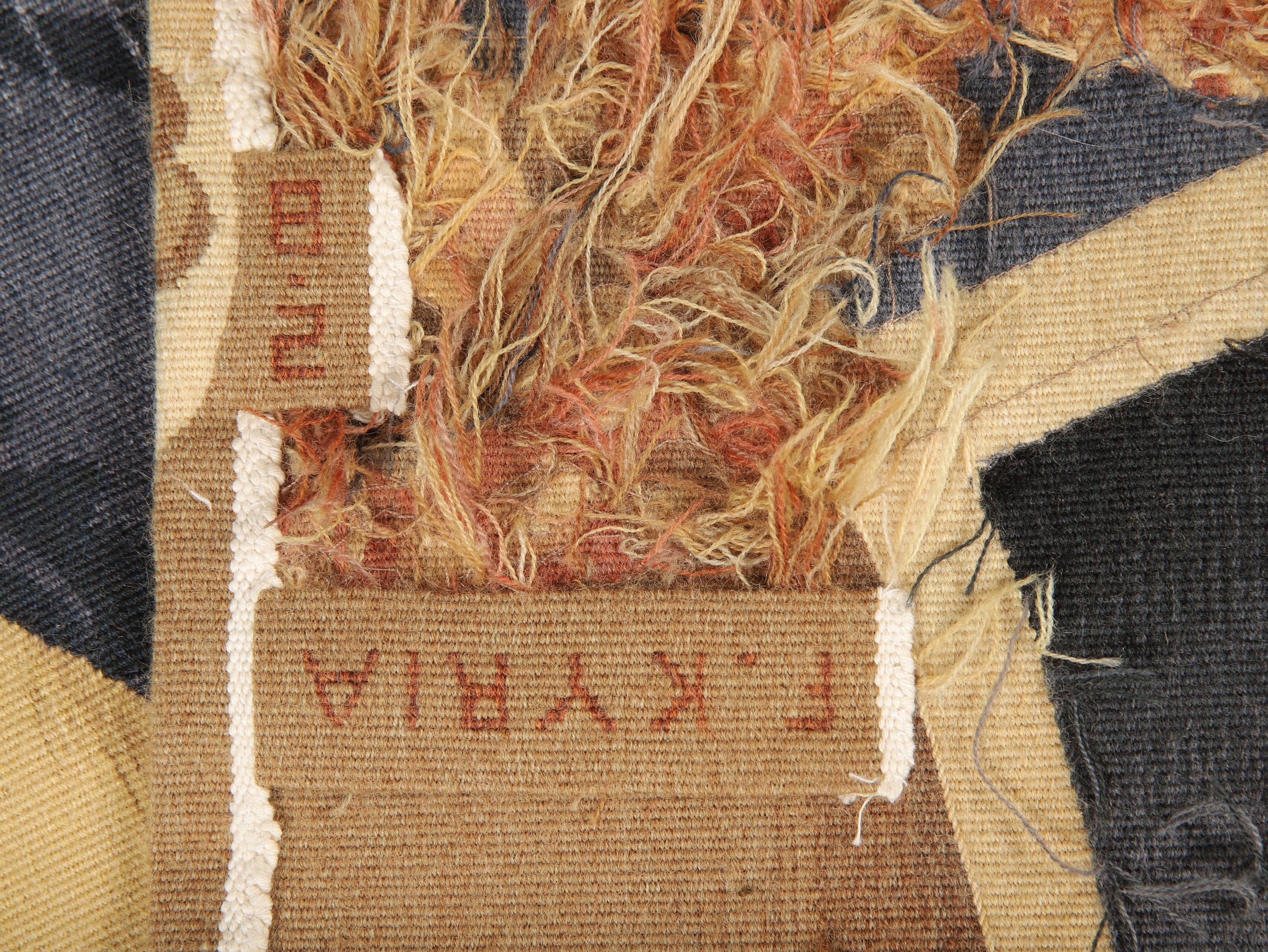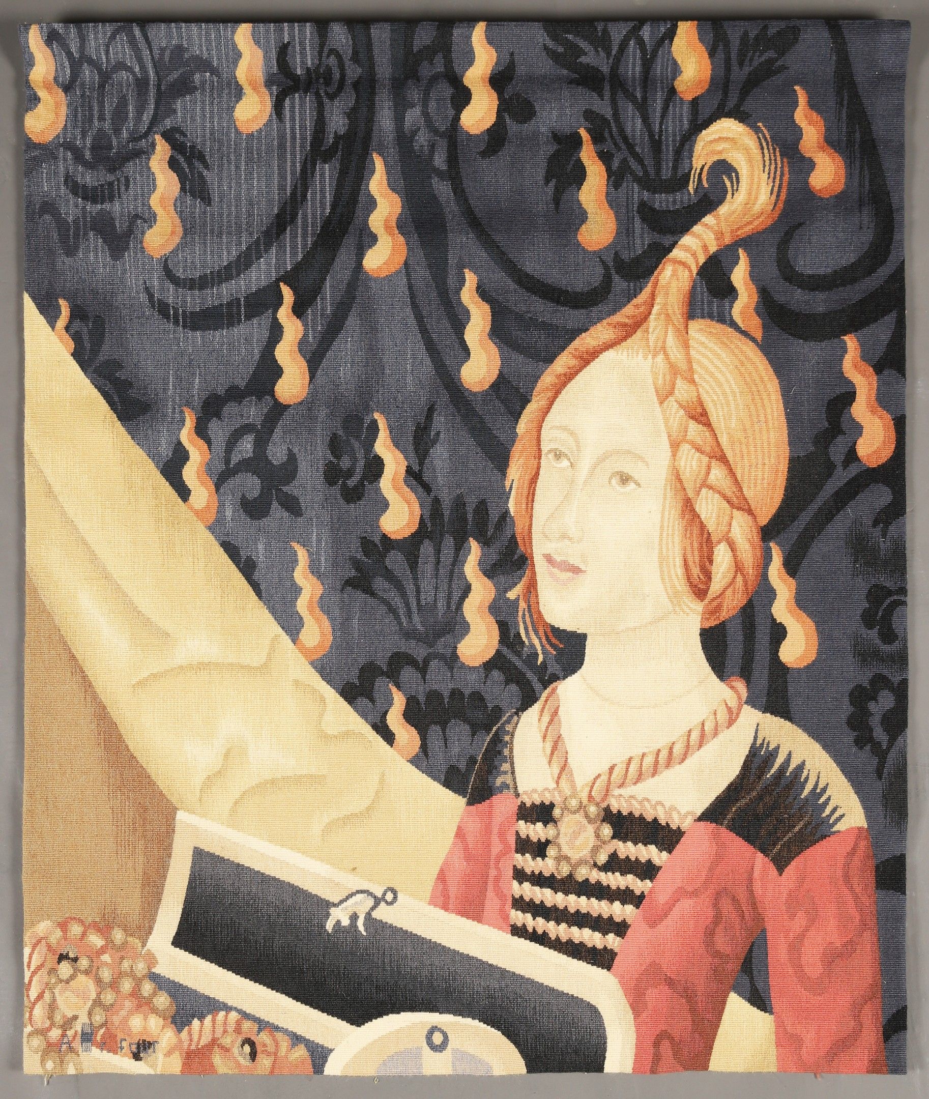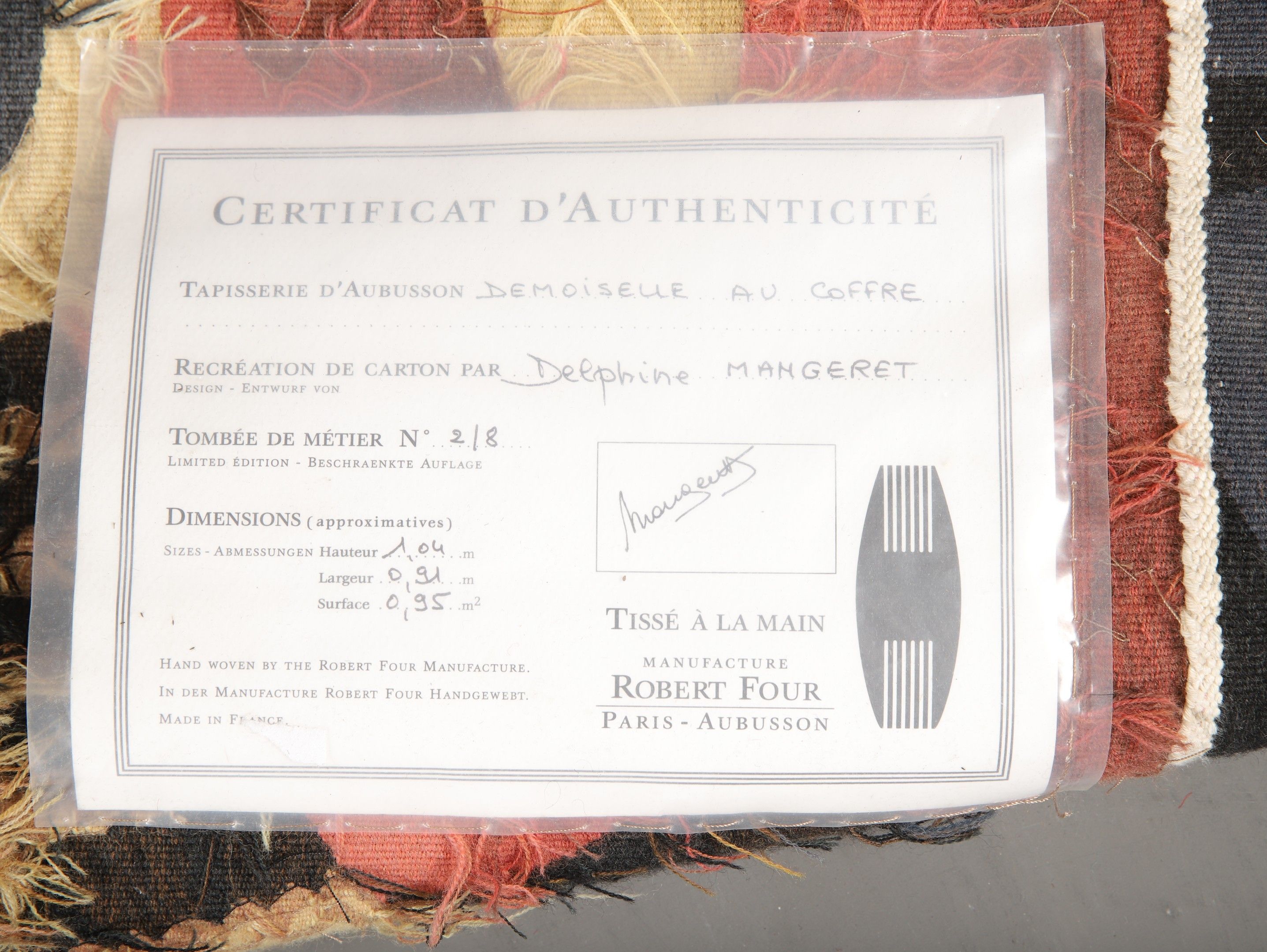 F. KYRIA and Delphine MANGERET in Aubusson. Demoiselle au coffre wool tapestry numbered 2/8, weaver Robert Four. Bolduc on reverse. 100 x 91 cm