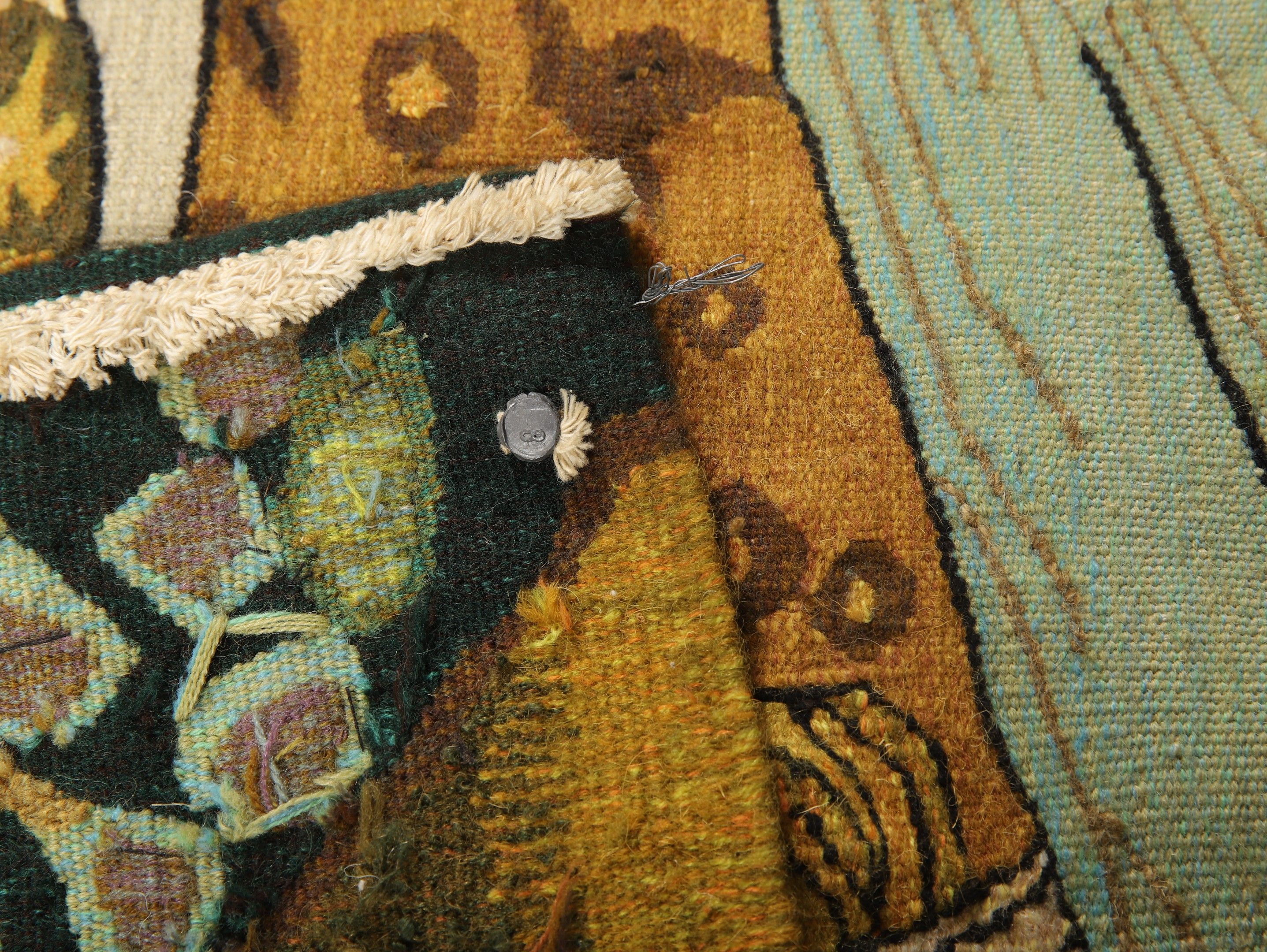 INDIA. WOLF FABRIC circa 1980 decorated with scenes from the Persian poets: Omar Khayyam, Saadi and Ferdowsi. 198 x 105 cm