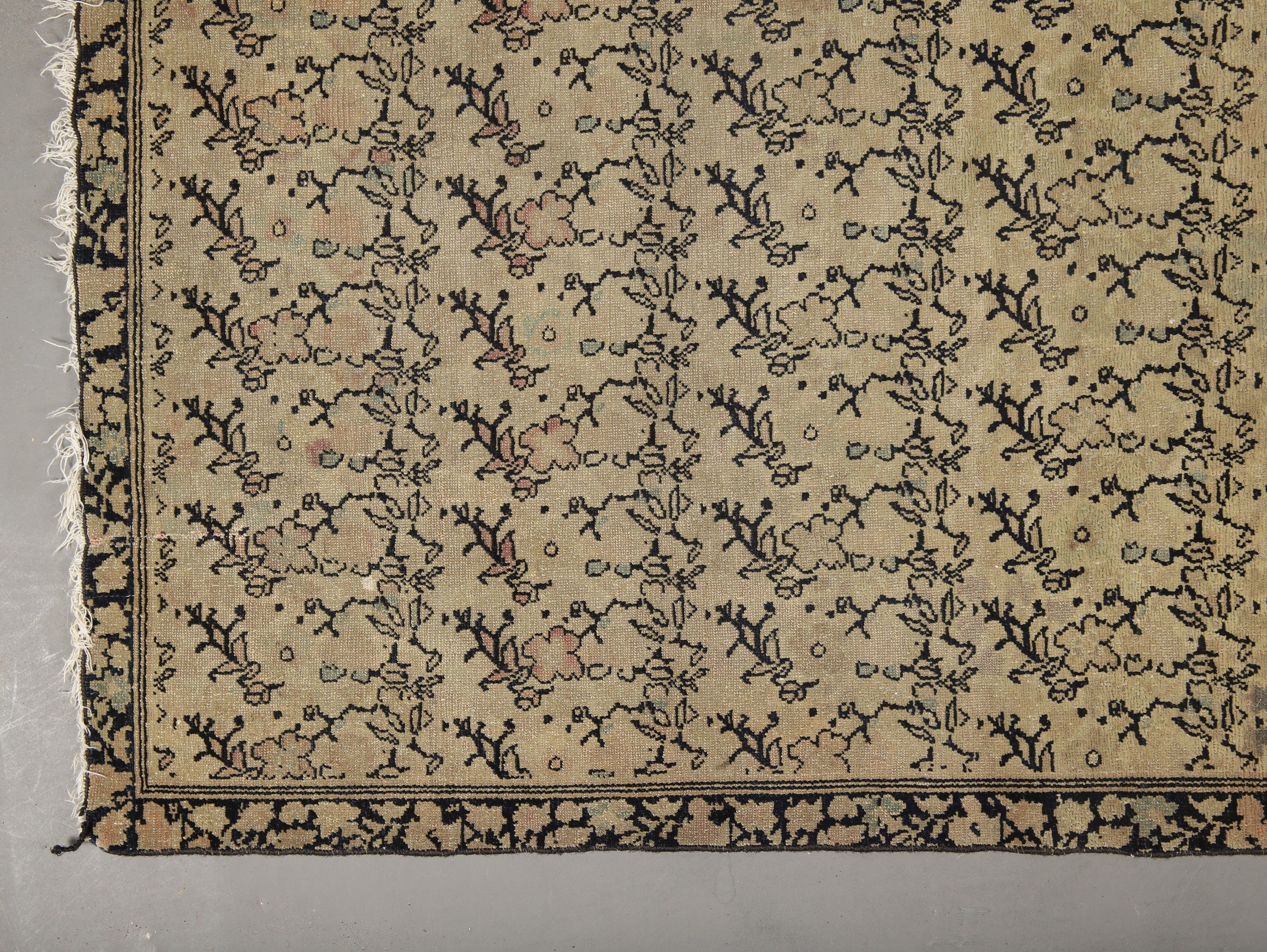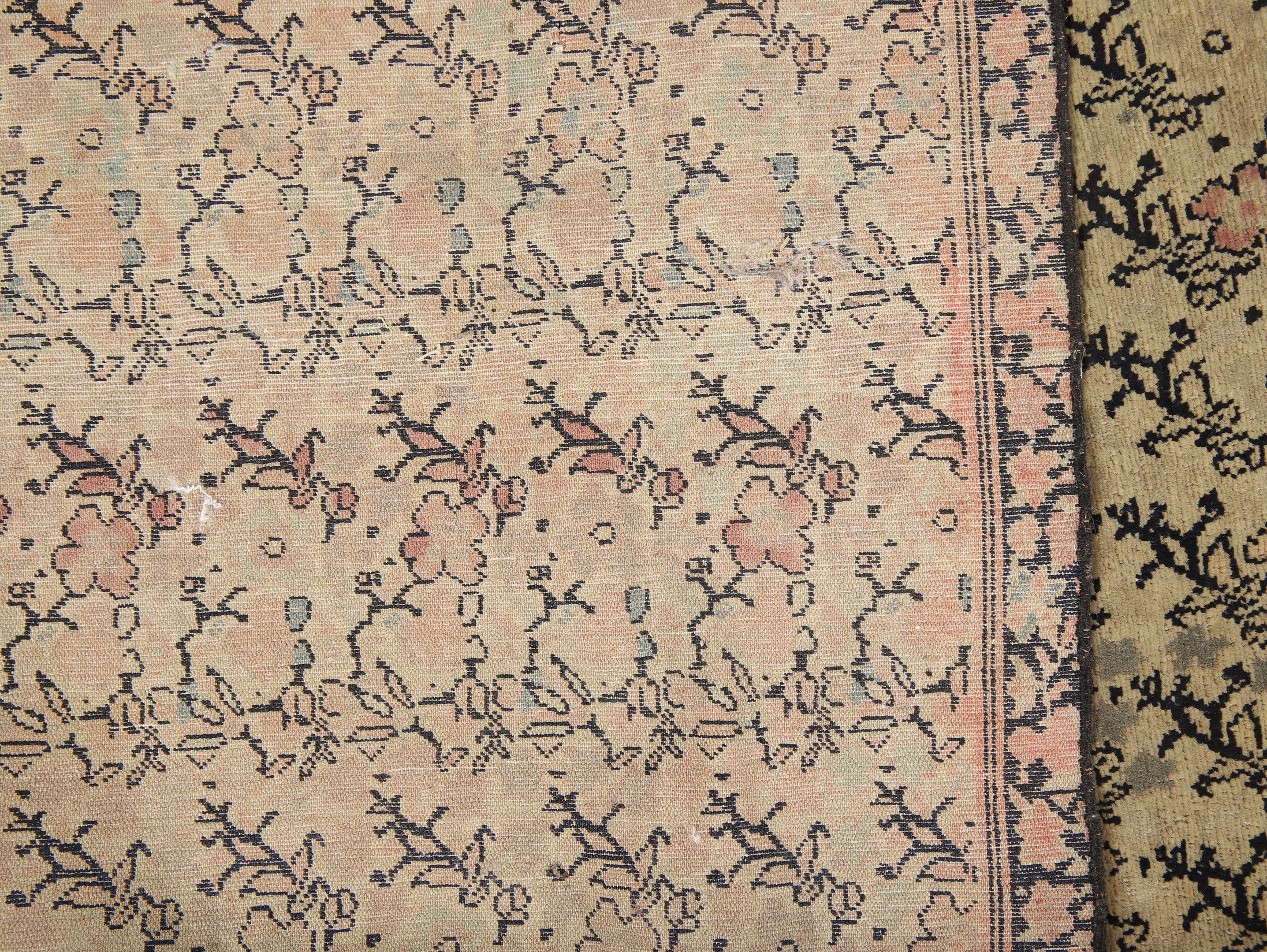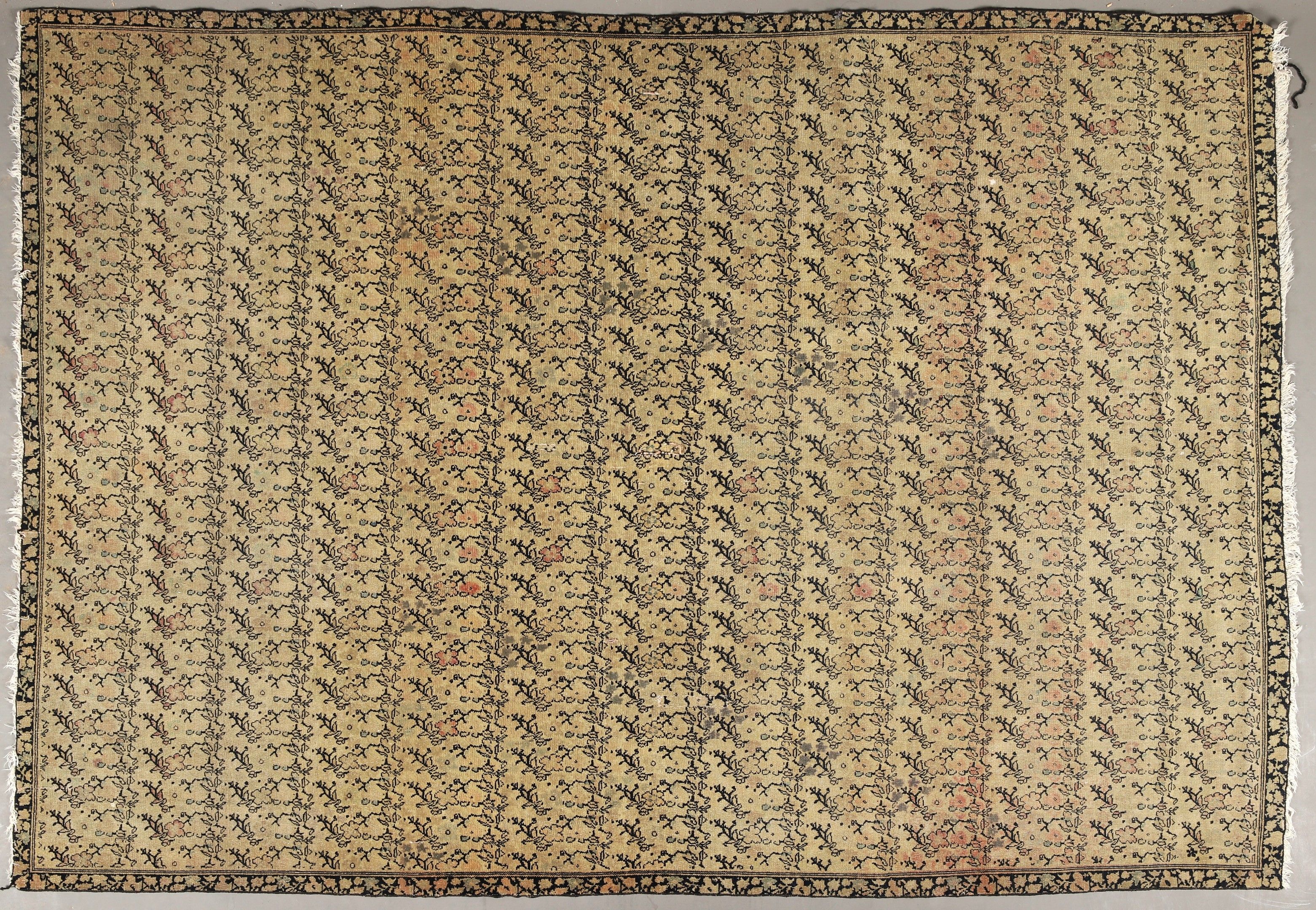 VERY FINE and OLD MALAYER CARPET (Iran) in wool and cotton with small flower motifs on a beige background. Density approx 9,000/10,000 knots per dm2. 180 x 135 cm (oxidation and wear)
