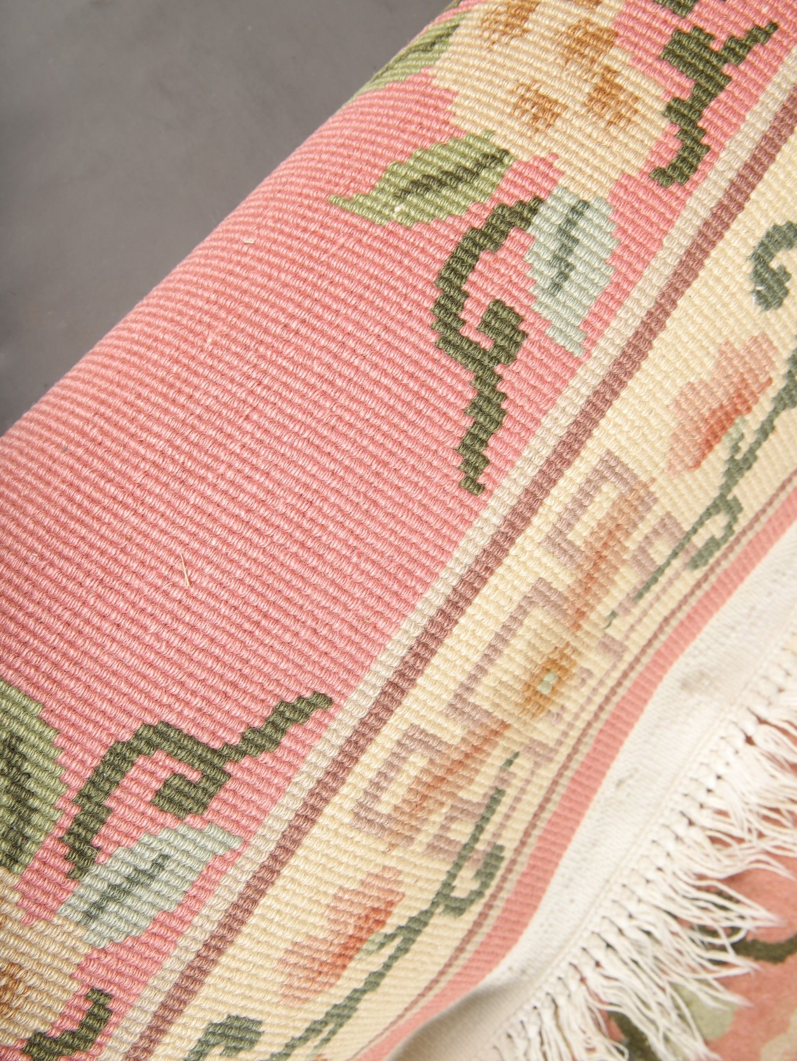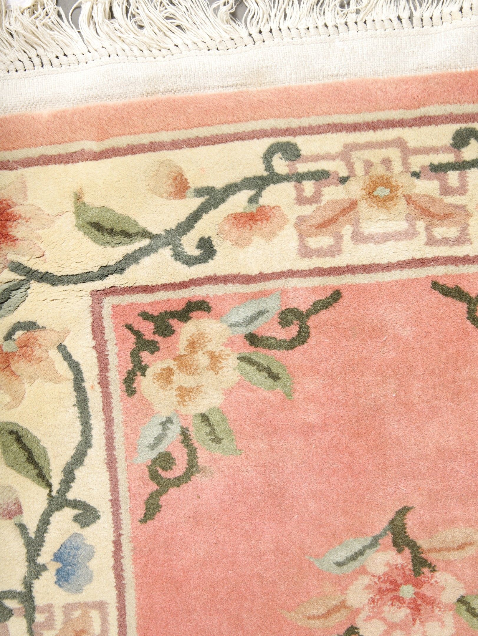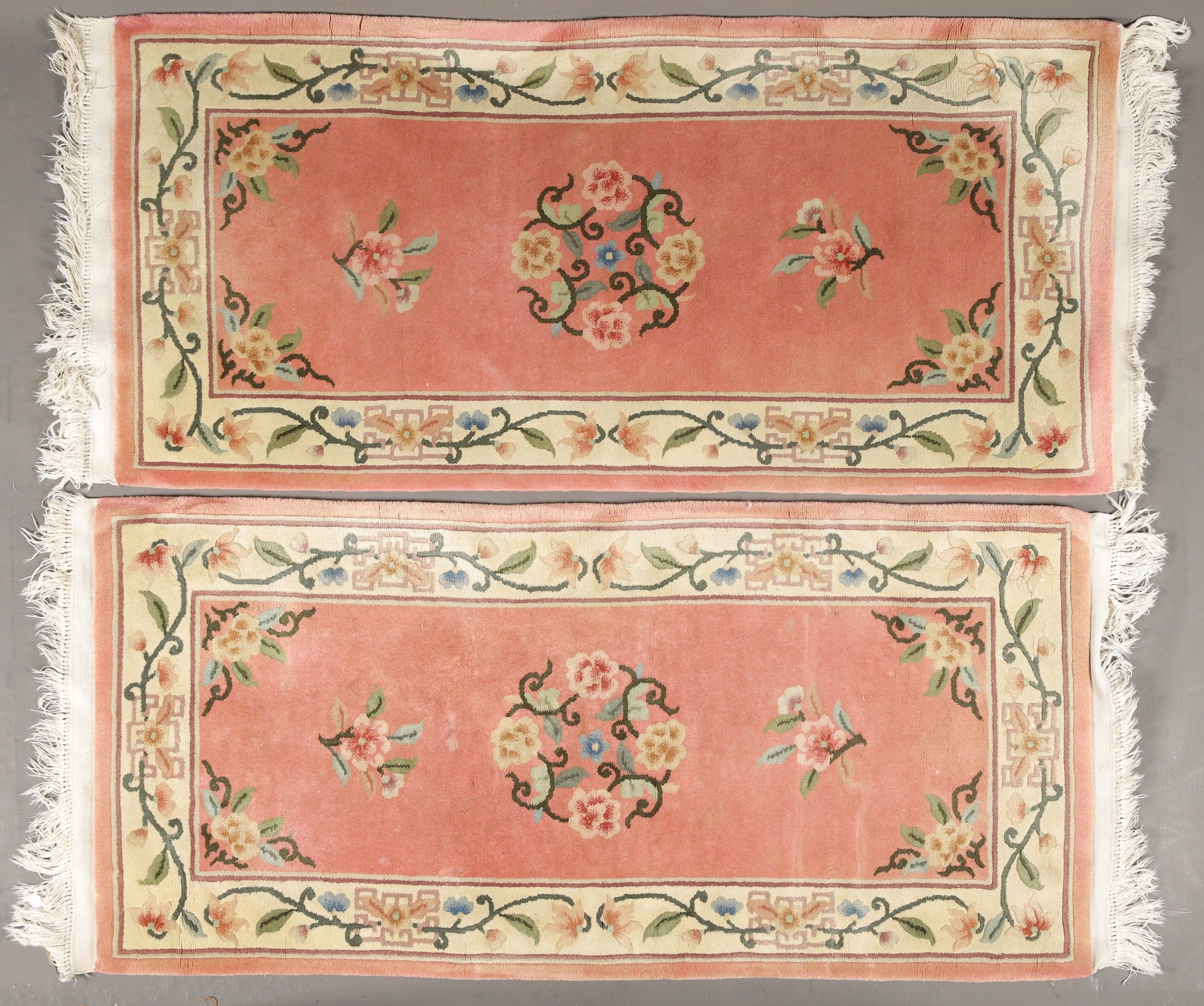 PAIR OF TIEN SIN RUGS (China) in wool and cotton with flowers on a pink background. 160 x 78 cm (good condition)