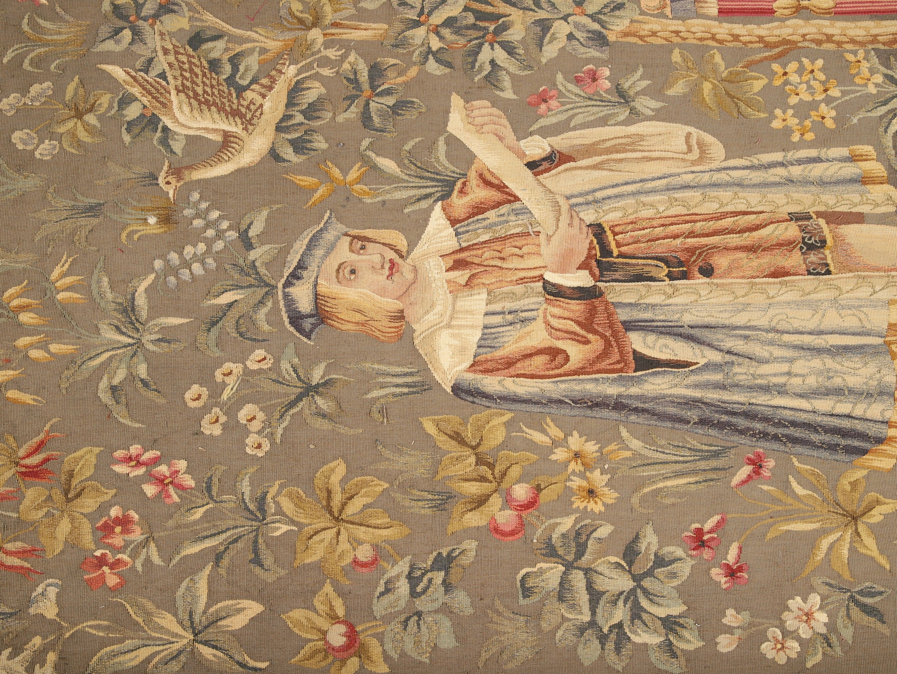 MILLEFLEURS d'AUBUSSON woollen tapestry depicting a scene of chivalry in the taste of the Middle Ages. 202 x 173 cm