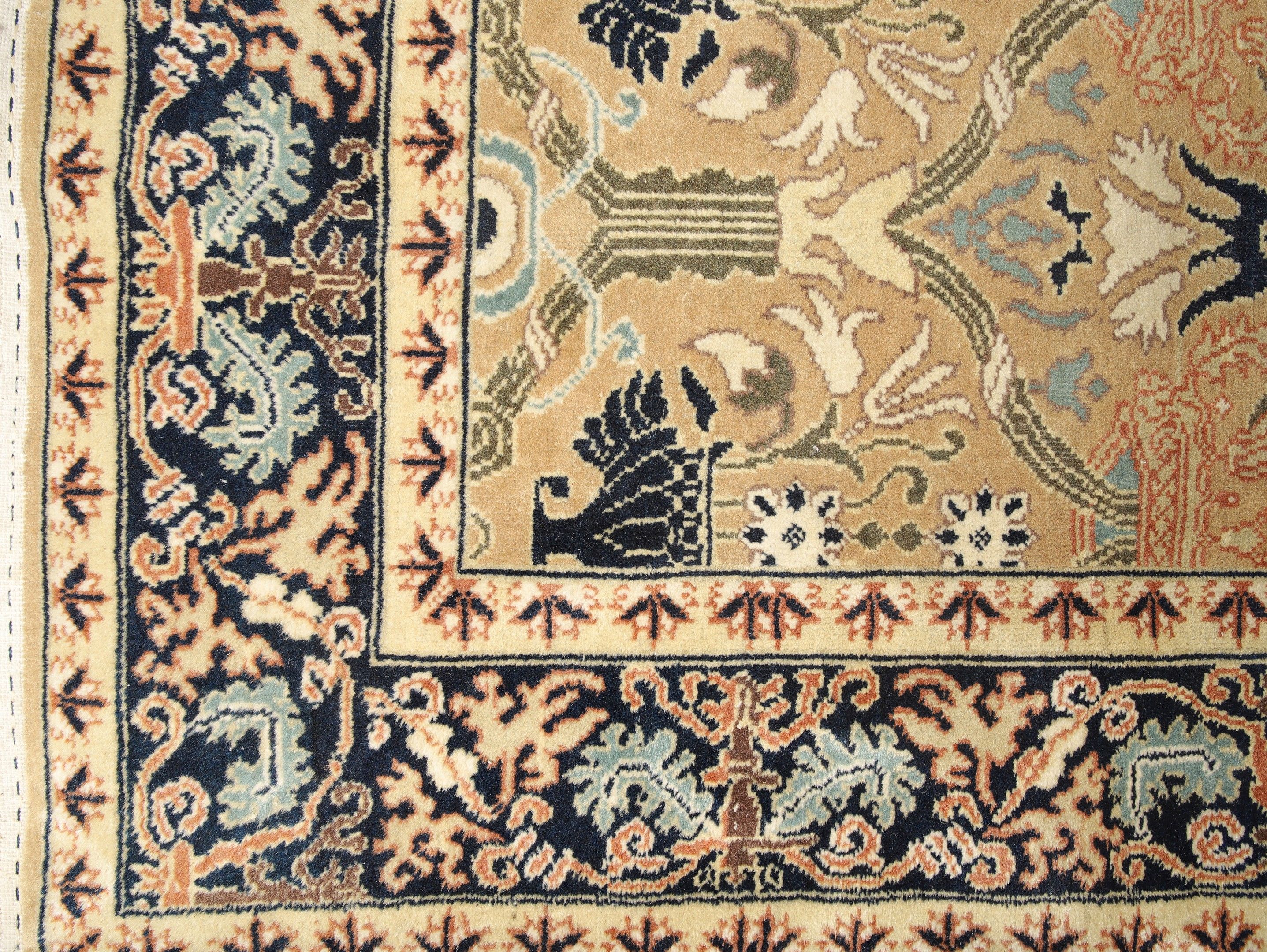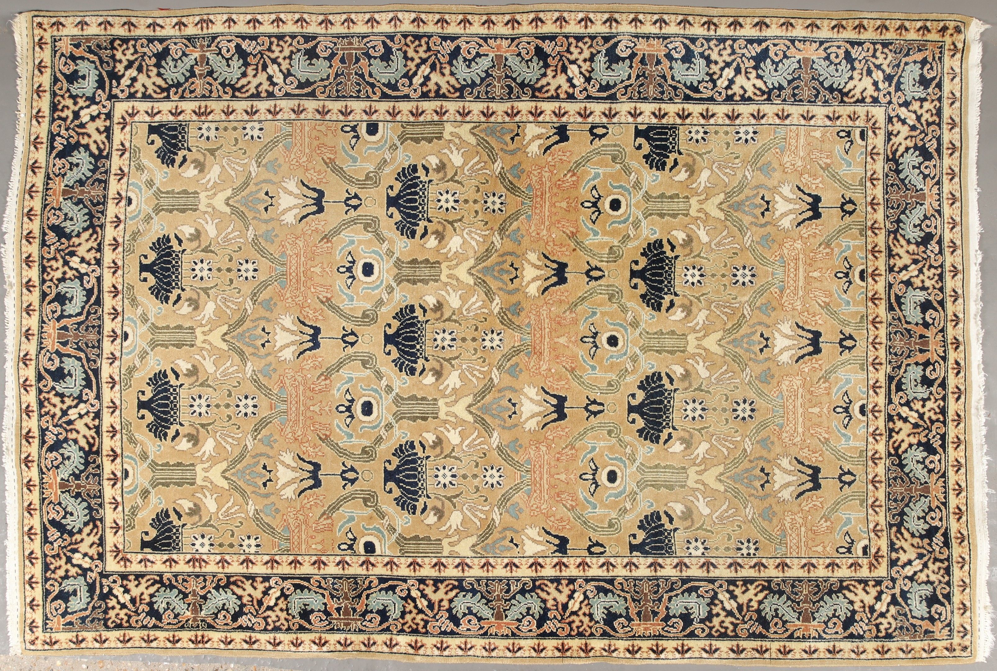 ORIGINAL Romanian wool and cotton carpet circa 1975-1980 decorated with vases and flowers on an abrash beige ground. 237 x 170 cm
