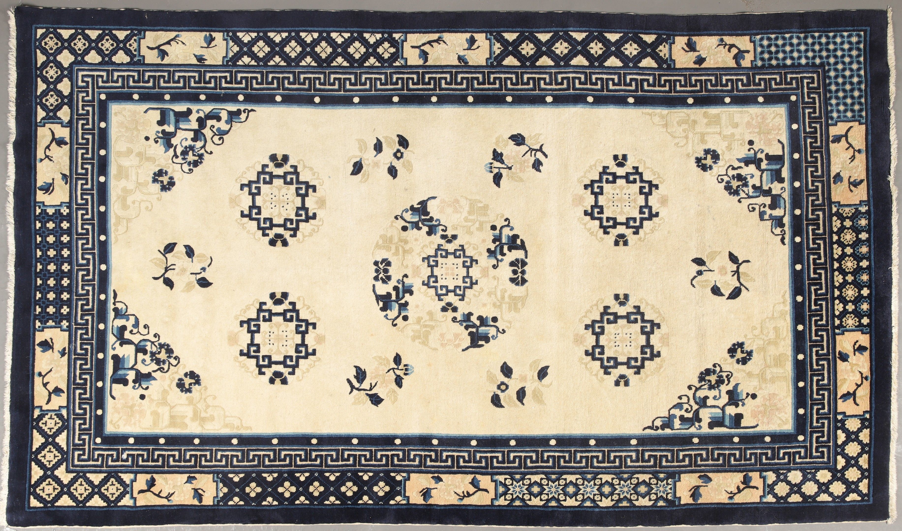 PEKIN RUG (China) in wool and cotton with medallion design on a beige background. 248 x 150 cm