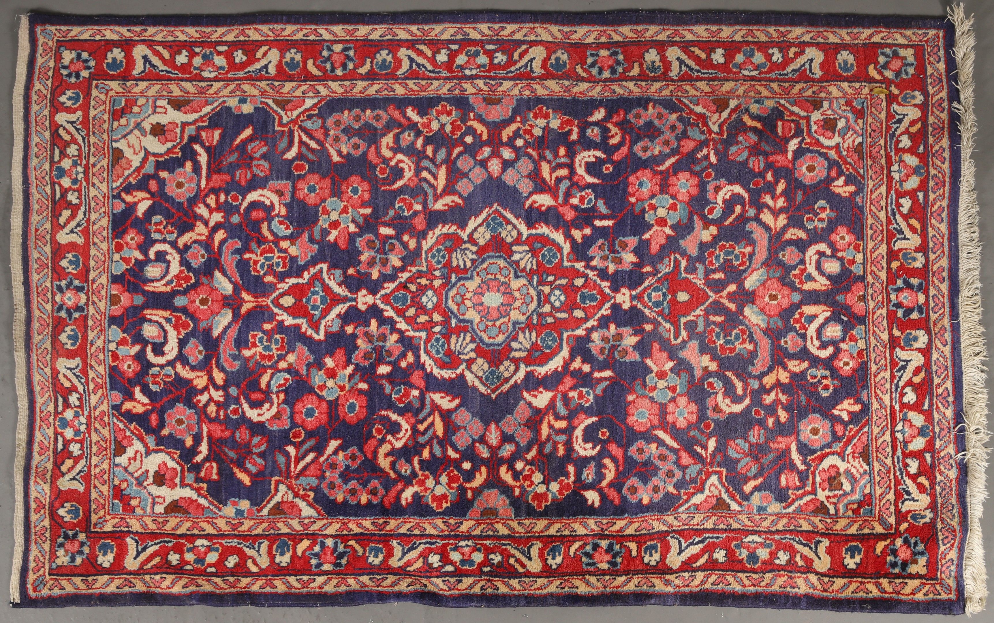 MAHAL SAROUK RUG (Iran) circa 1975 in wool and cotton with medallion decoration on a quetsch background. 205 x 132 cm