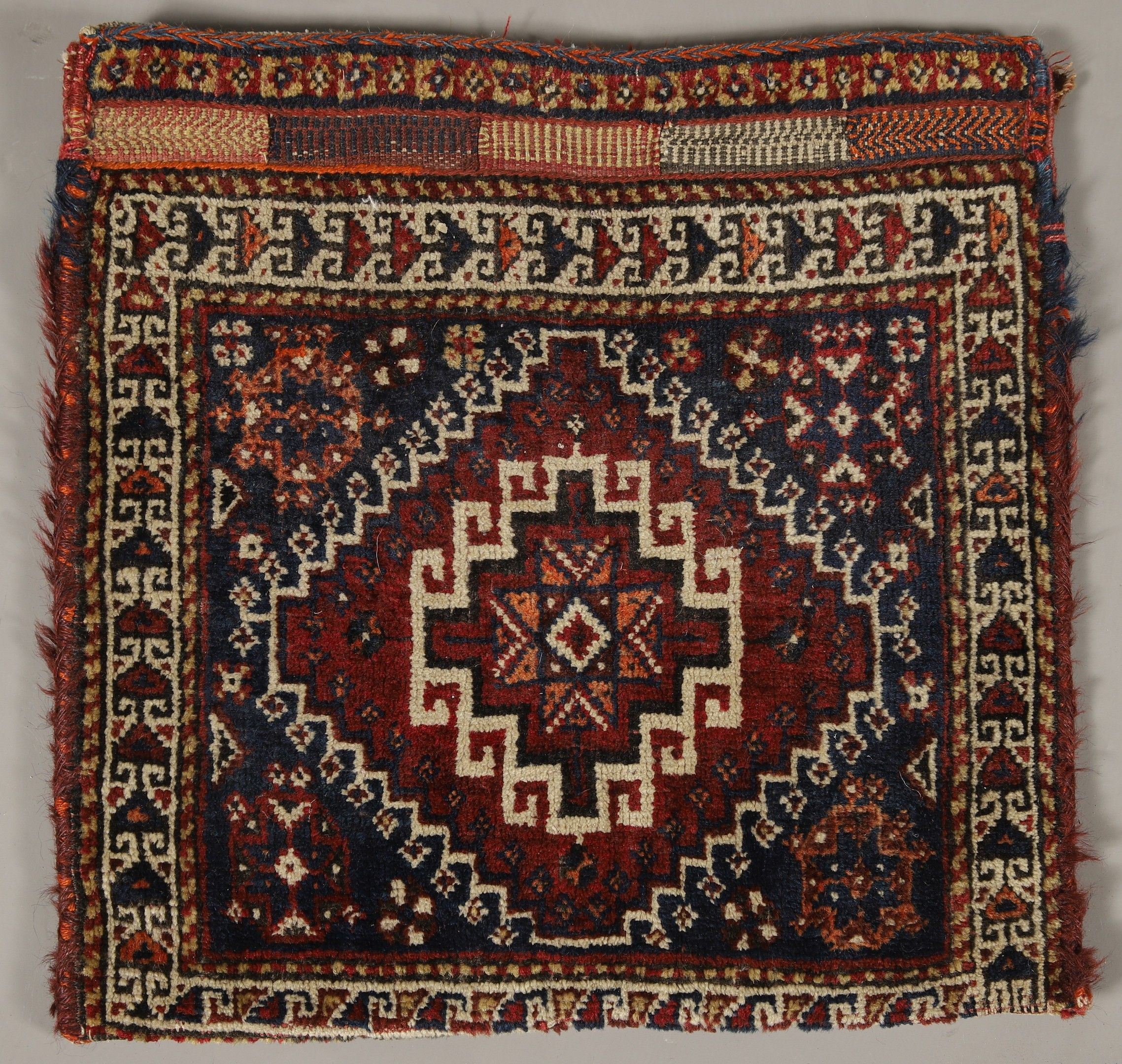 OLD KACHGHAI SADDLE BAG (Iran) in wool decorated with medallion and hooks. 51 x 49 cm