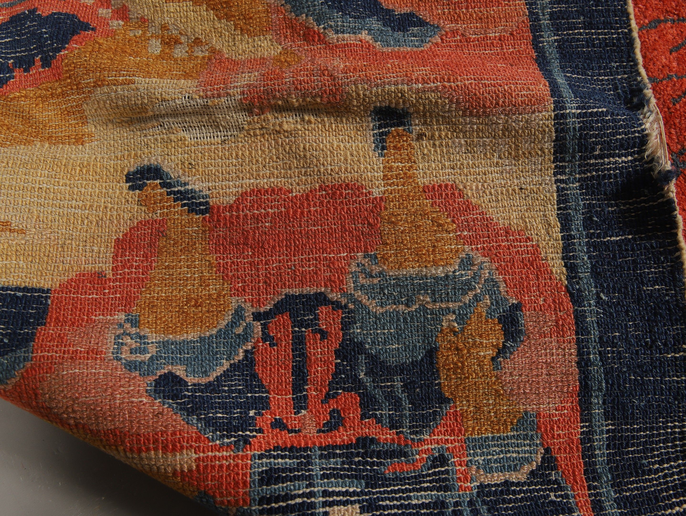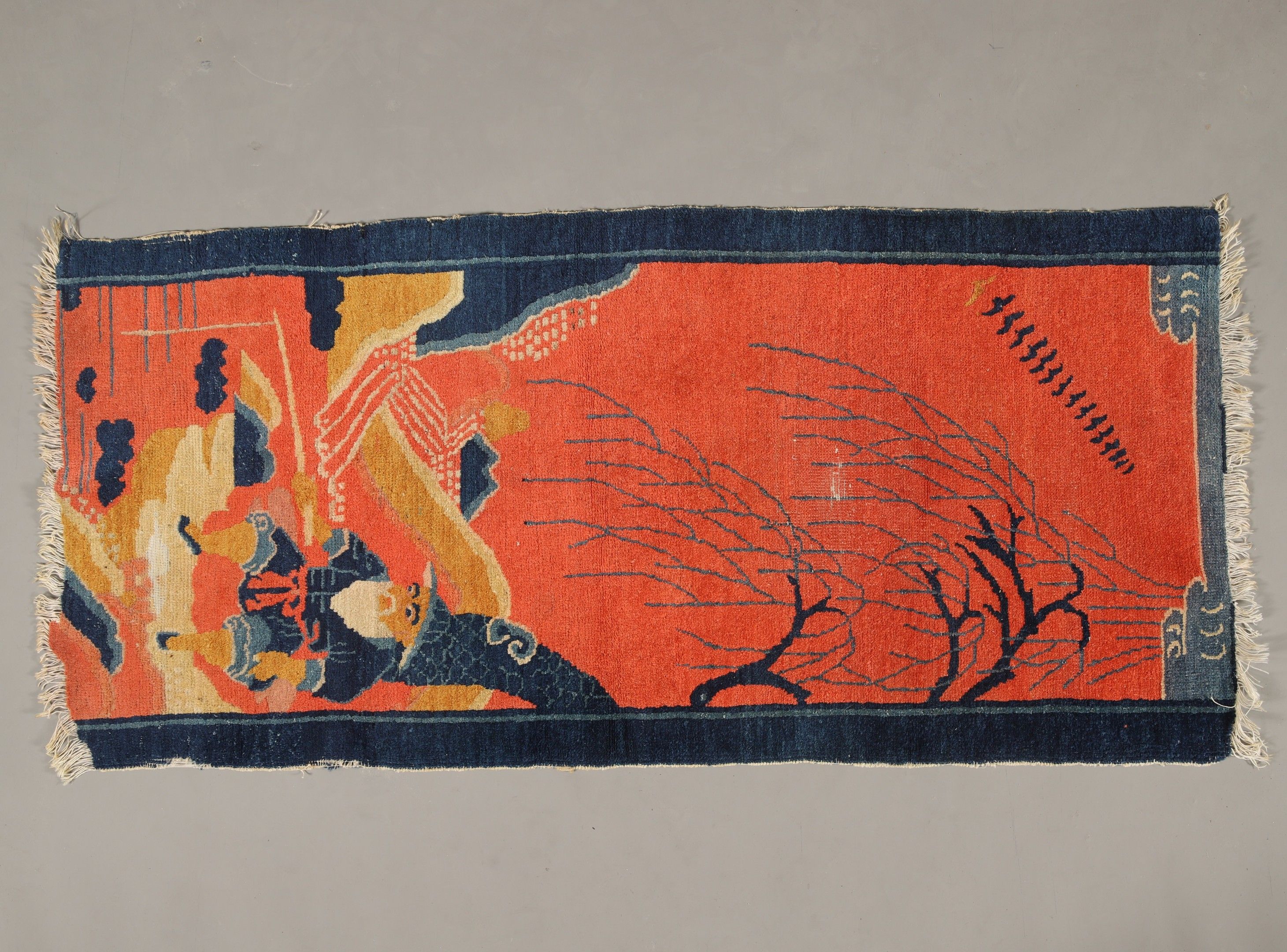 FIGURATIVE CHINESE WOOL RUG featuring an old man in a landsc…