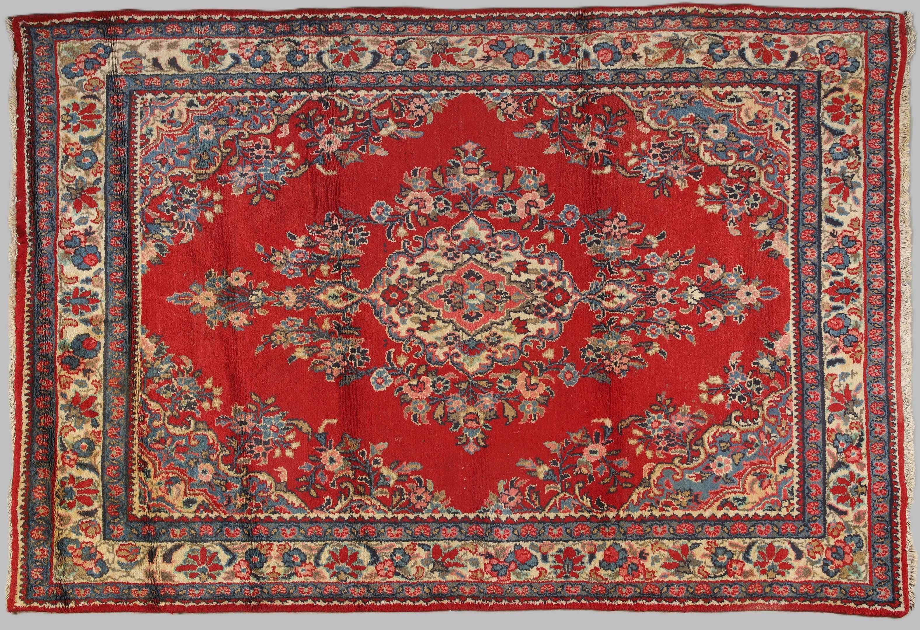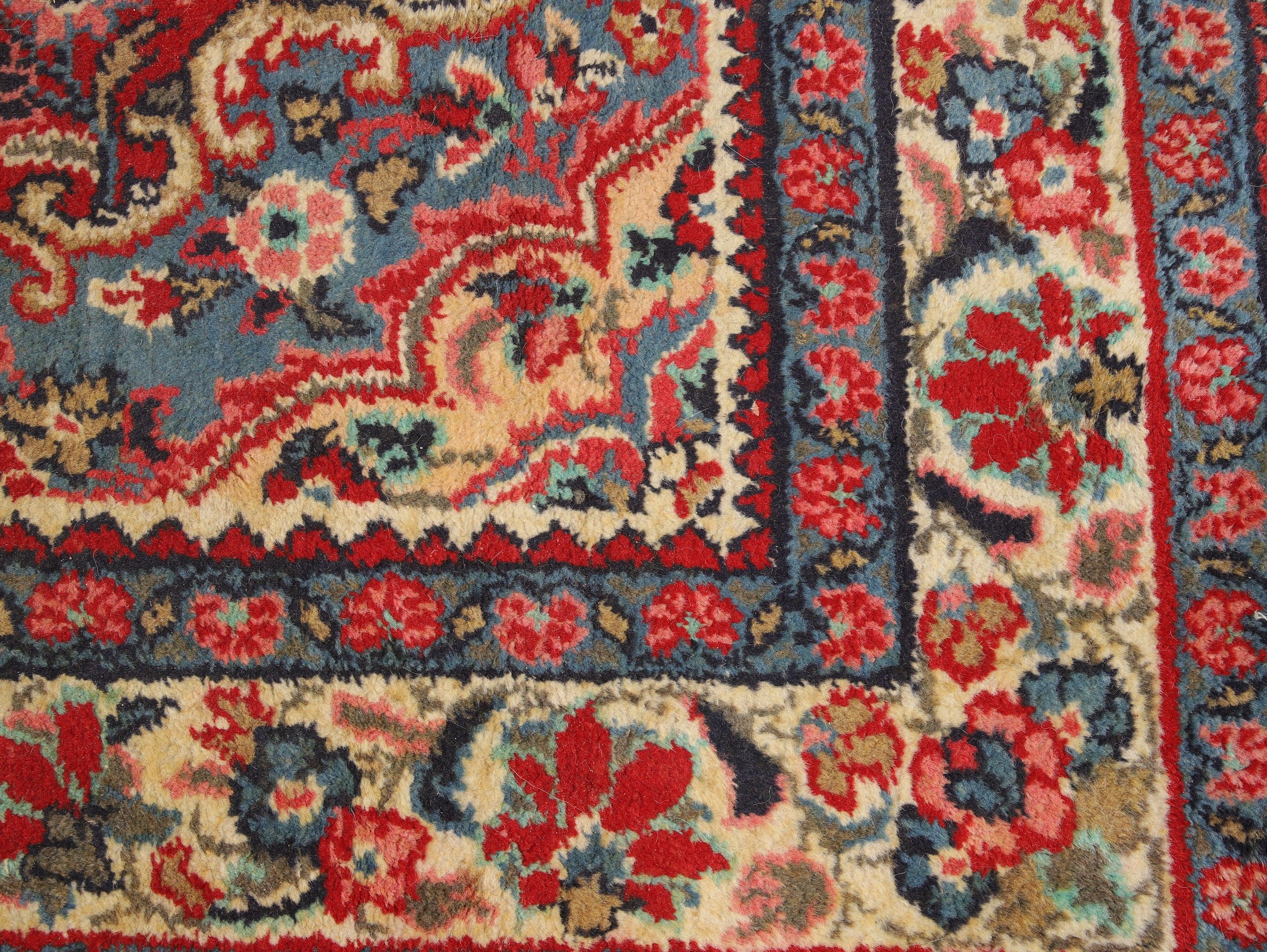 KIRMAN RUG (Iran) circa 1975 in wool on cotton, cherry field with large central medallion with floral wreath, 275 x 196 cm