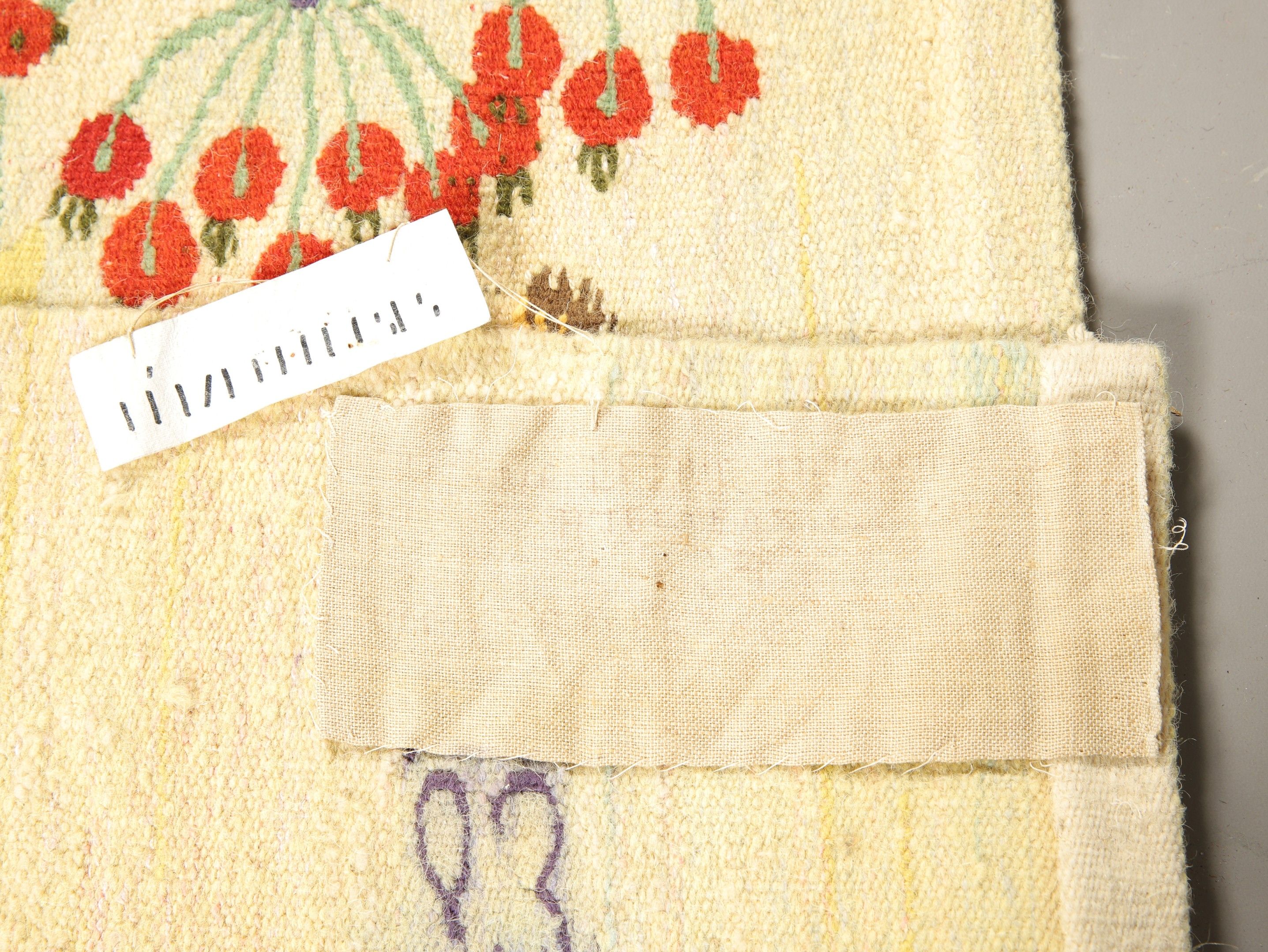 Aline LEDUC-DURAND, XXth century. Aubusson wool tapestry featuring birds among flowers on a yellow background dated 1983. Bolduc on reverse. 135 x 92 cm beautiful polychromy