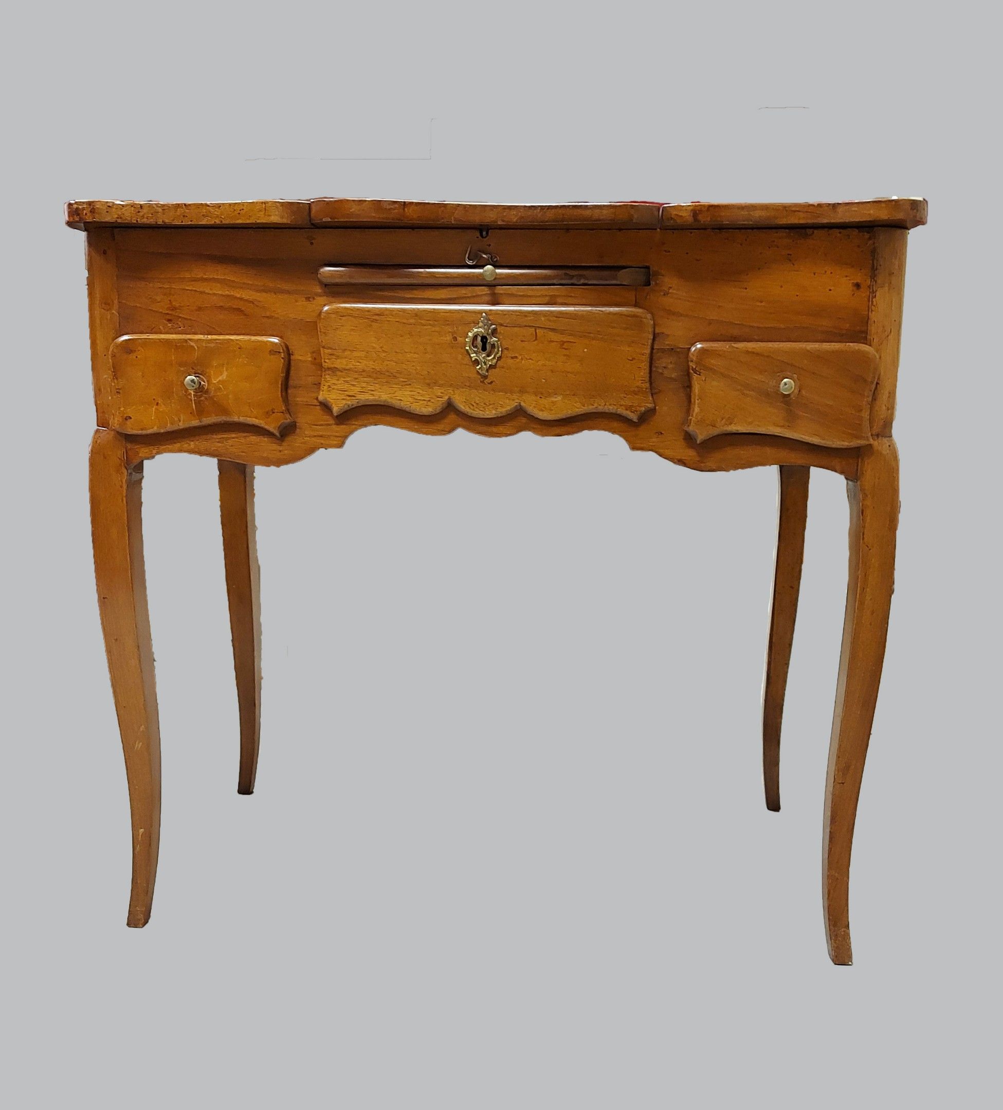 Walnut TOILET TABLE in the Louis XV style opening with 2 drawers, a pull-out and 3 flaps. 68 x 74 x 44 cm