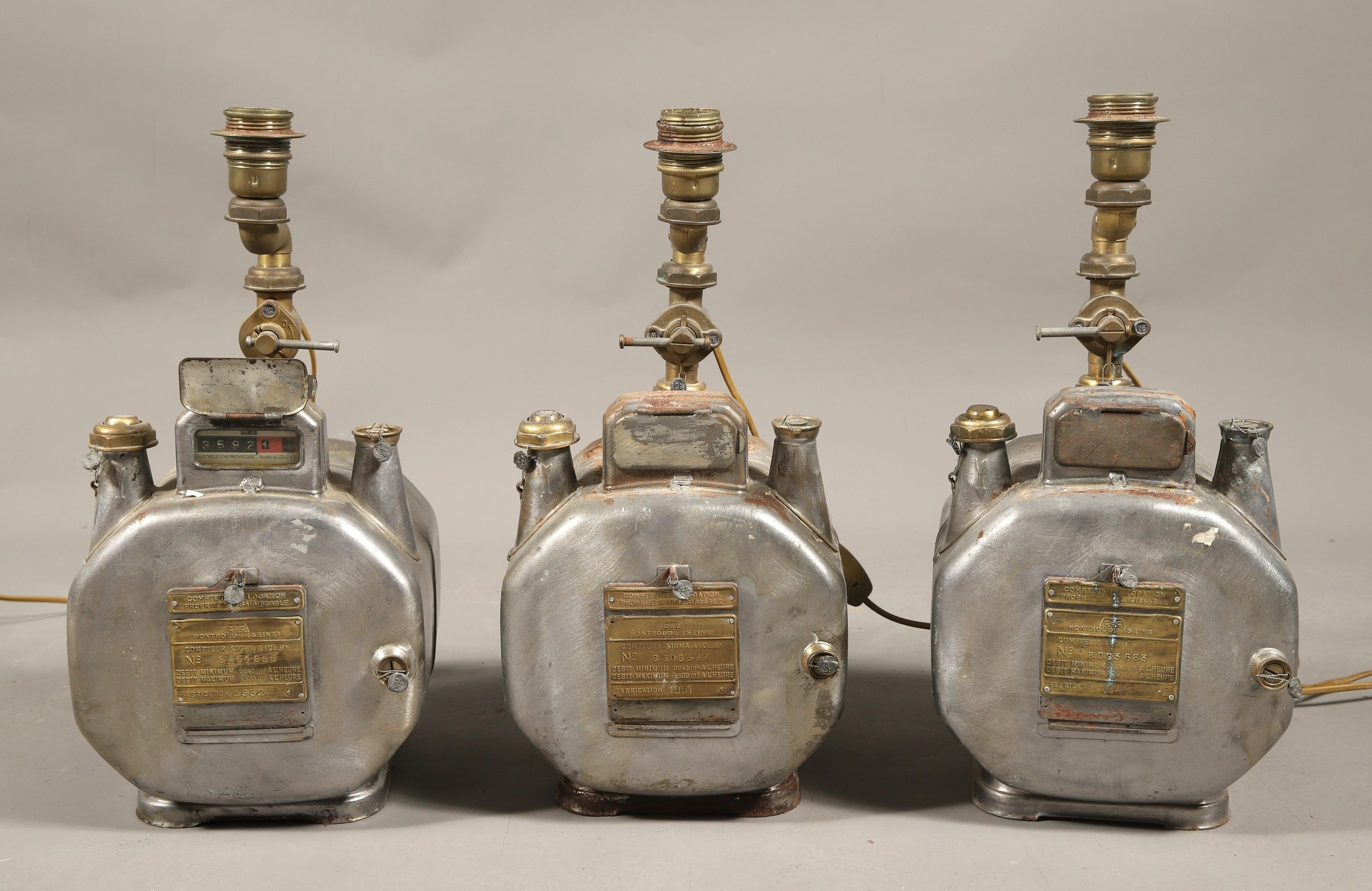 THREE OLD 1950's GAS METERS mounted in lamp.
