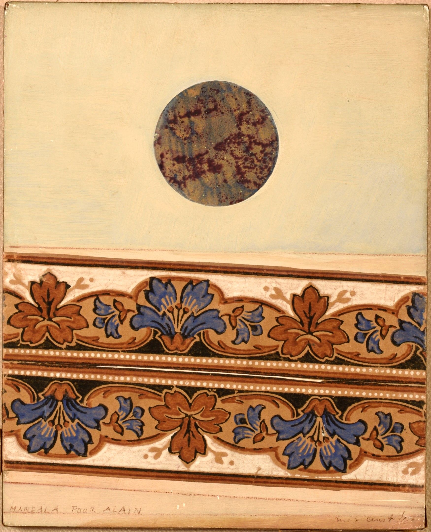 Oil, painted collage and watercolour on panel, signed and dated lower right, titled lower left, countersigned, dated and dedicated ''Monsieur Alain Bosquet, Paris Huismes le 19 VII 61. Dear Alain, for a quick cure, look at the mandala fixedly for 3 minutes on an empty stomach every morning. I kiss you. max' on the back