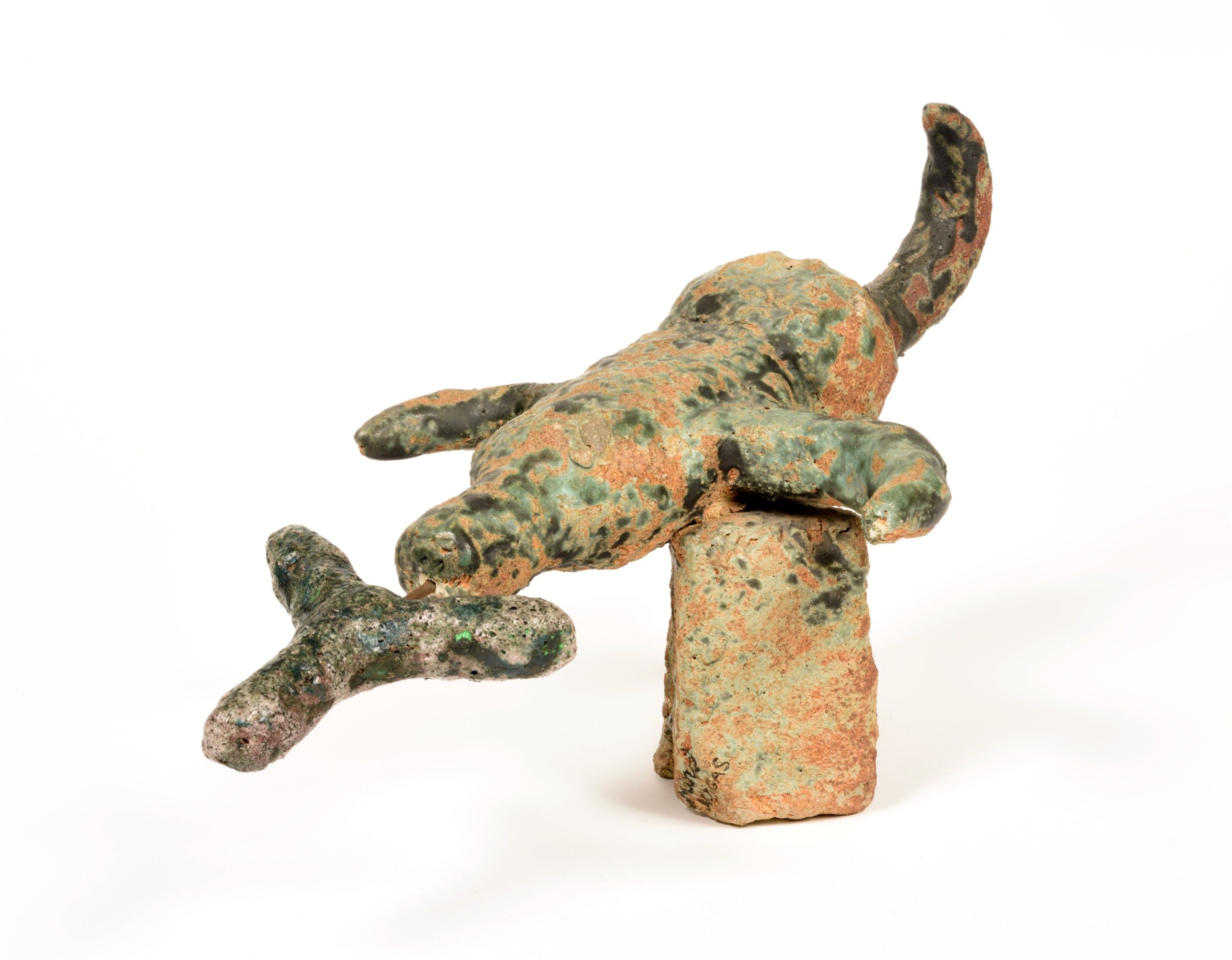 Earthware with coloured engobe, signed on the base by both artists