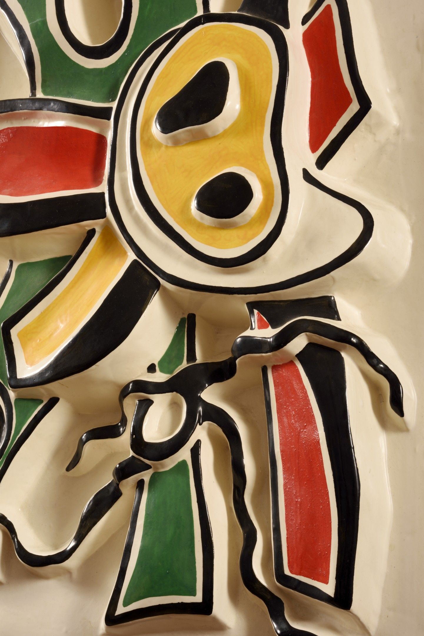 Bas-relief in polychrome enamelled ceramic on white background, signed and dated in the decor, inscribed with the stamp of Fernand Léger and the Brice studio on the reverse, unique piece
