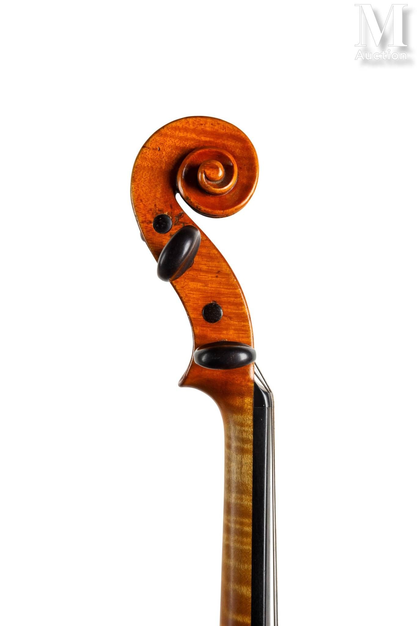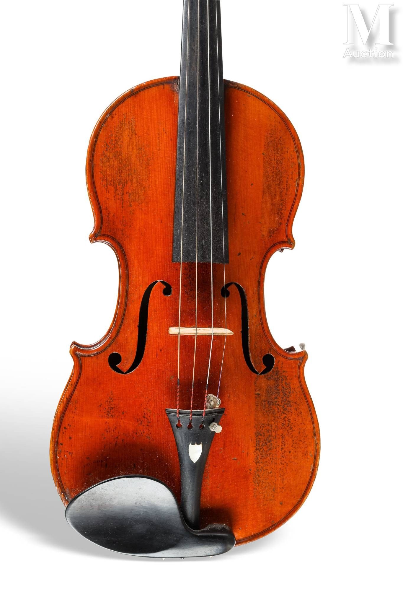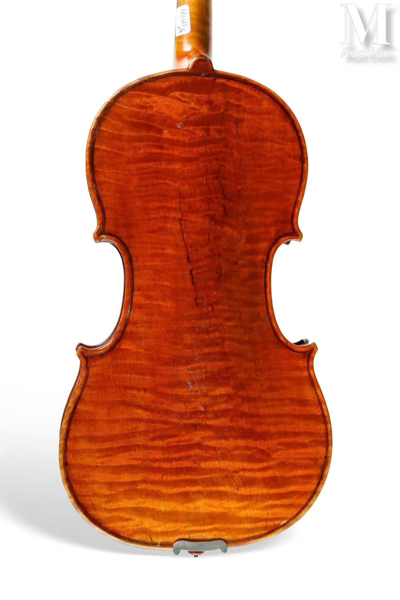 bearing the iron mark "CHARLES SIMONIN A PARIS" and the lyre, one-piece back of fine birdseye maple, spruce top with medium-tight pores, widening at one edge, gilt brown varnish. 364 mm.