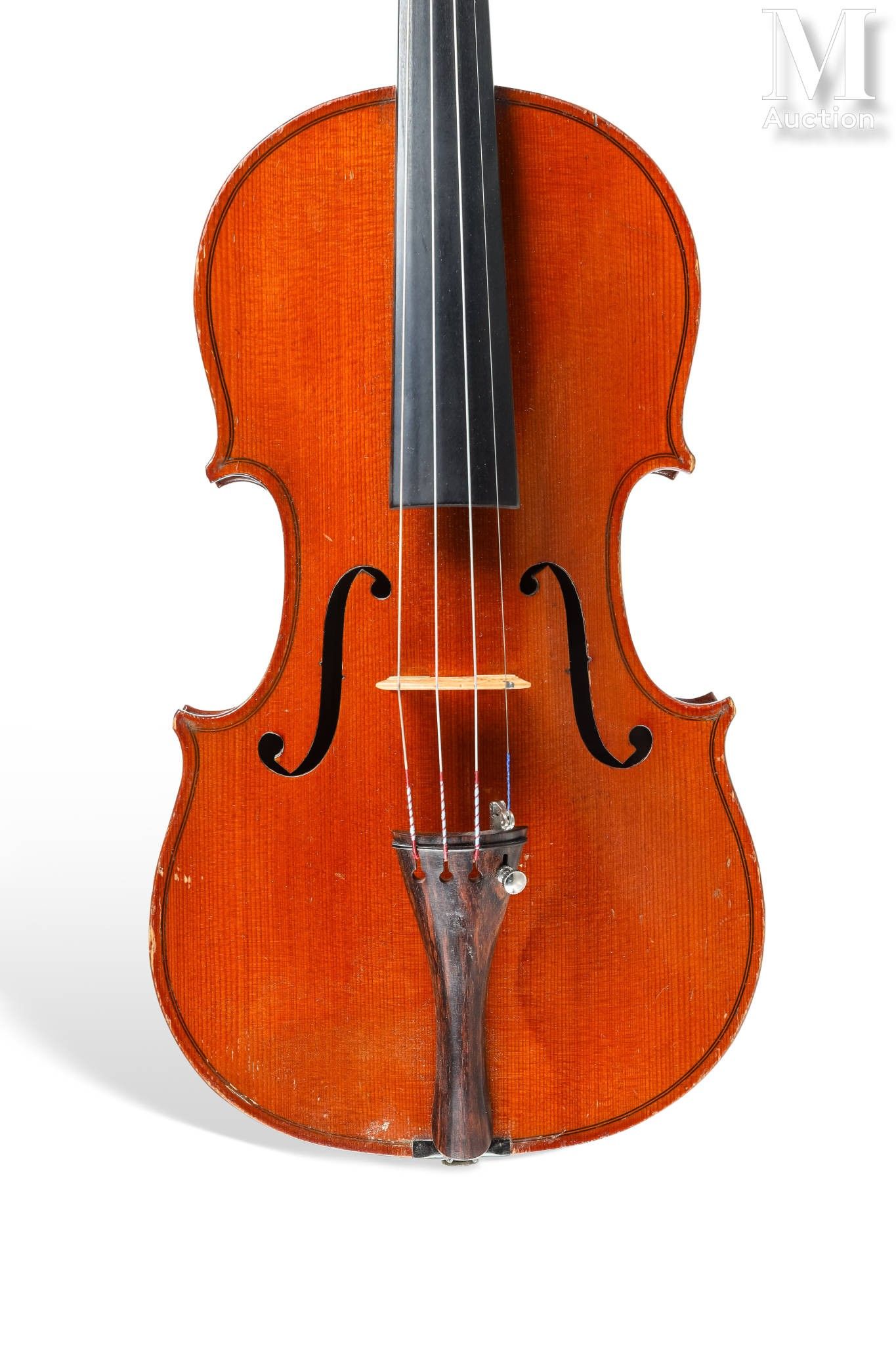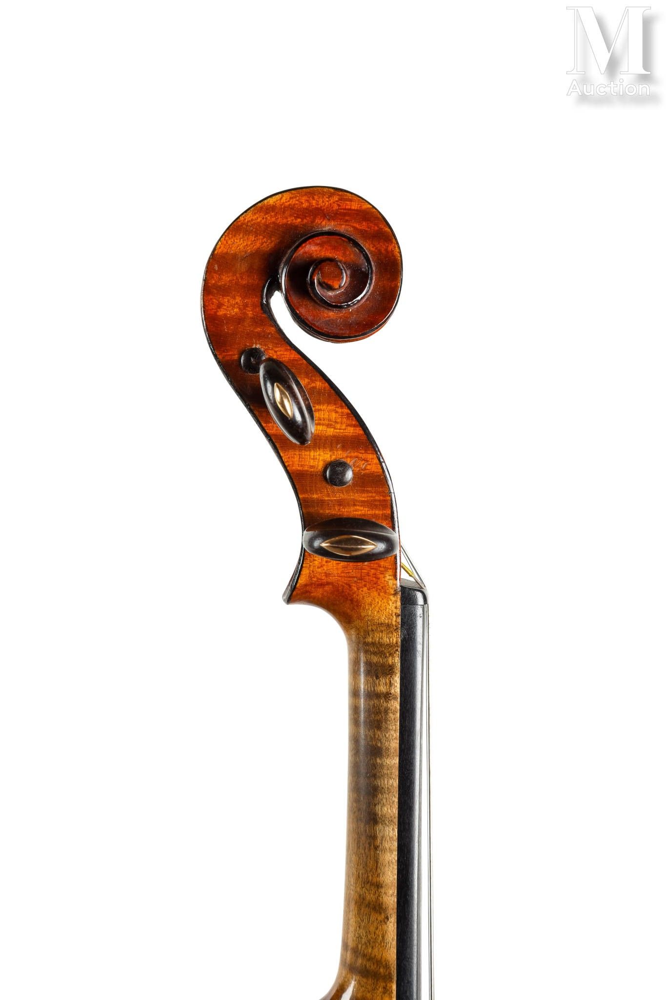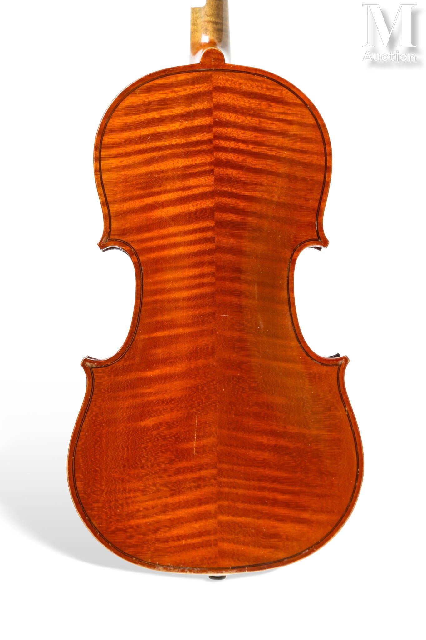 with label and ink signature, dated 1895. Two-piece maple back with regular descending waves. Very good condition. 360 mm.