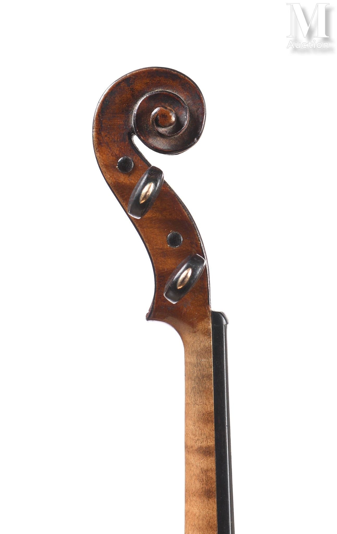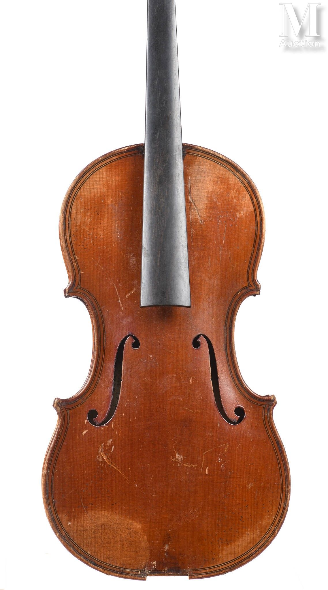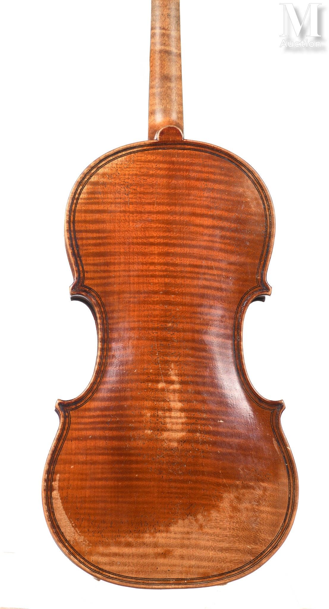 made in copy, double purfling, bearing a label "CH.J.B. Collin Mezin", one-piece back of beautiful maple with regular waves, ribs and head of the same wood, spruce top with fine and regular pores, brown varnish on gilt background 364mm.