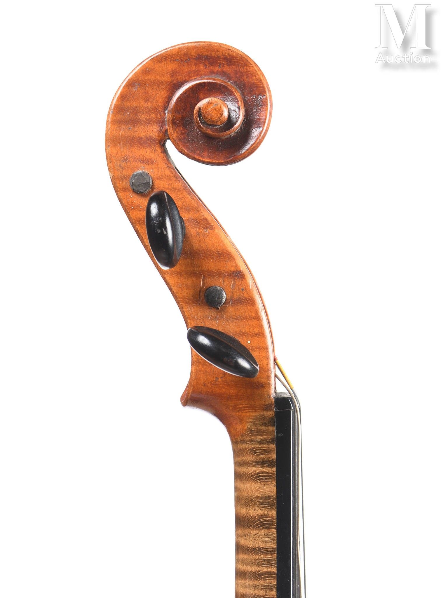 One-piece back in beautiful maple with regular waves, perfect playing condition, restored breaks on the top, ready to play, 359mm.