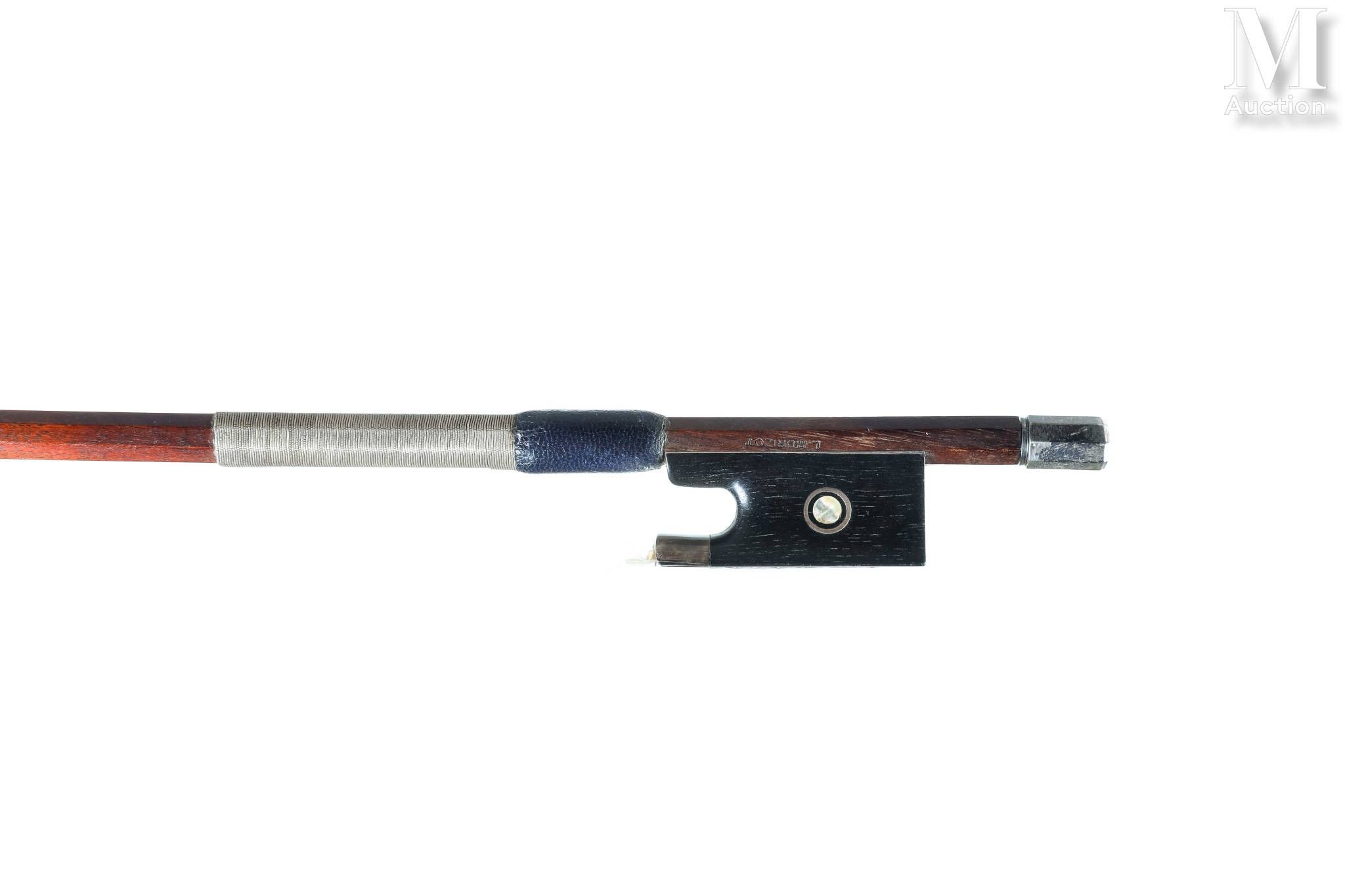 iron-marked "L.MORIZOT", round pernambuco stick, ebony frog, silver mounted. 729 mm. 50 g without wick and silver fittings on silk.