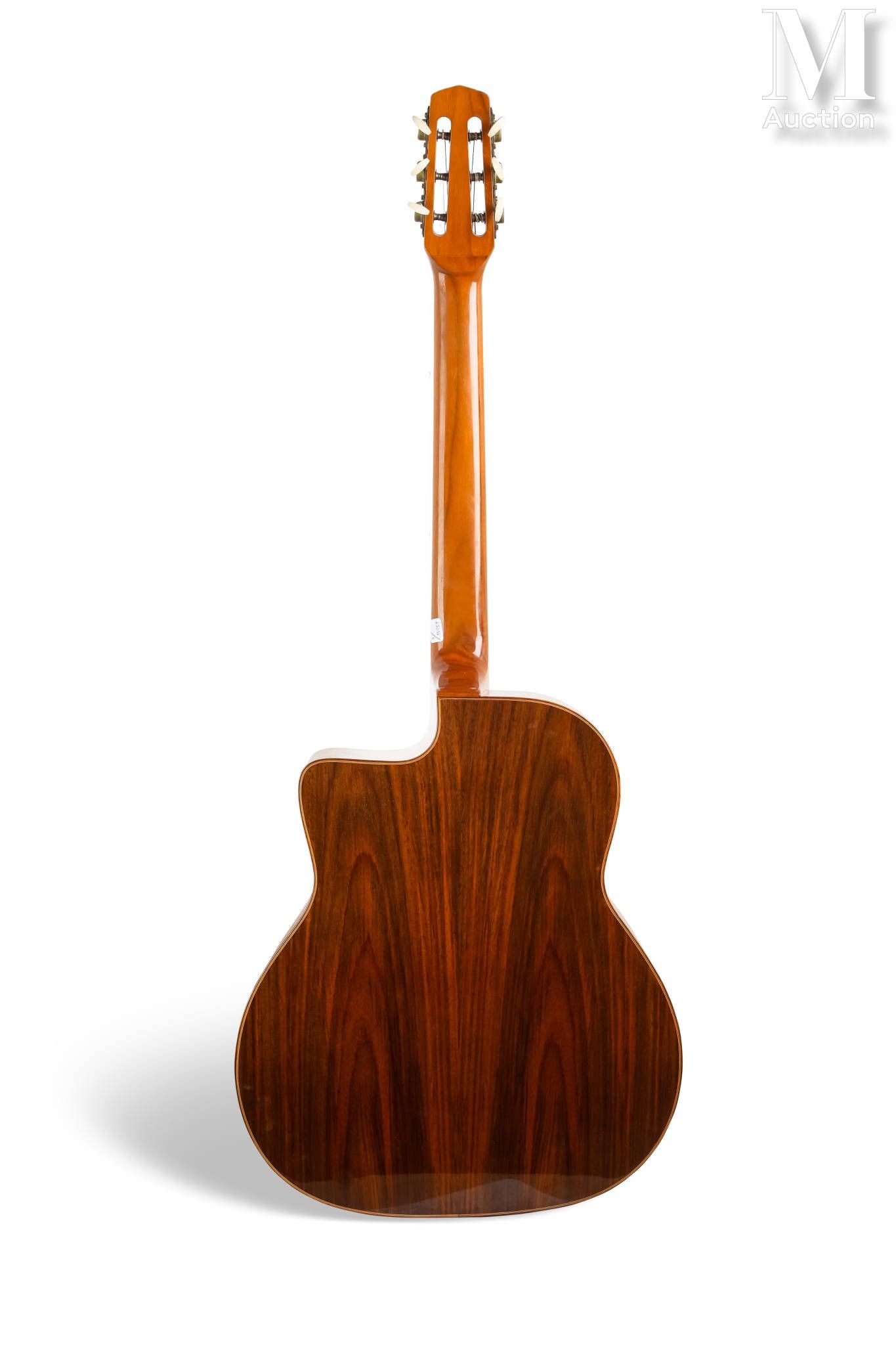 bearing the label "Galato Paris, série 1, RS1939", and the mark on the headstock "Angelo Debarre", made as a SELMER copy, small mouth, rosewood back and sides, spruce top, walnut neck and headstock, 14 fret.