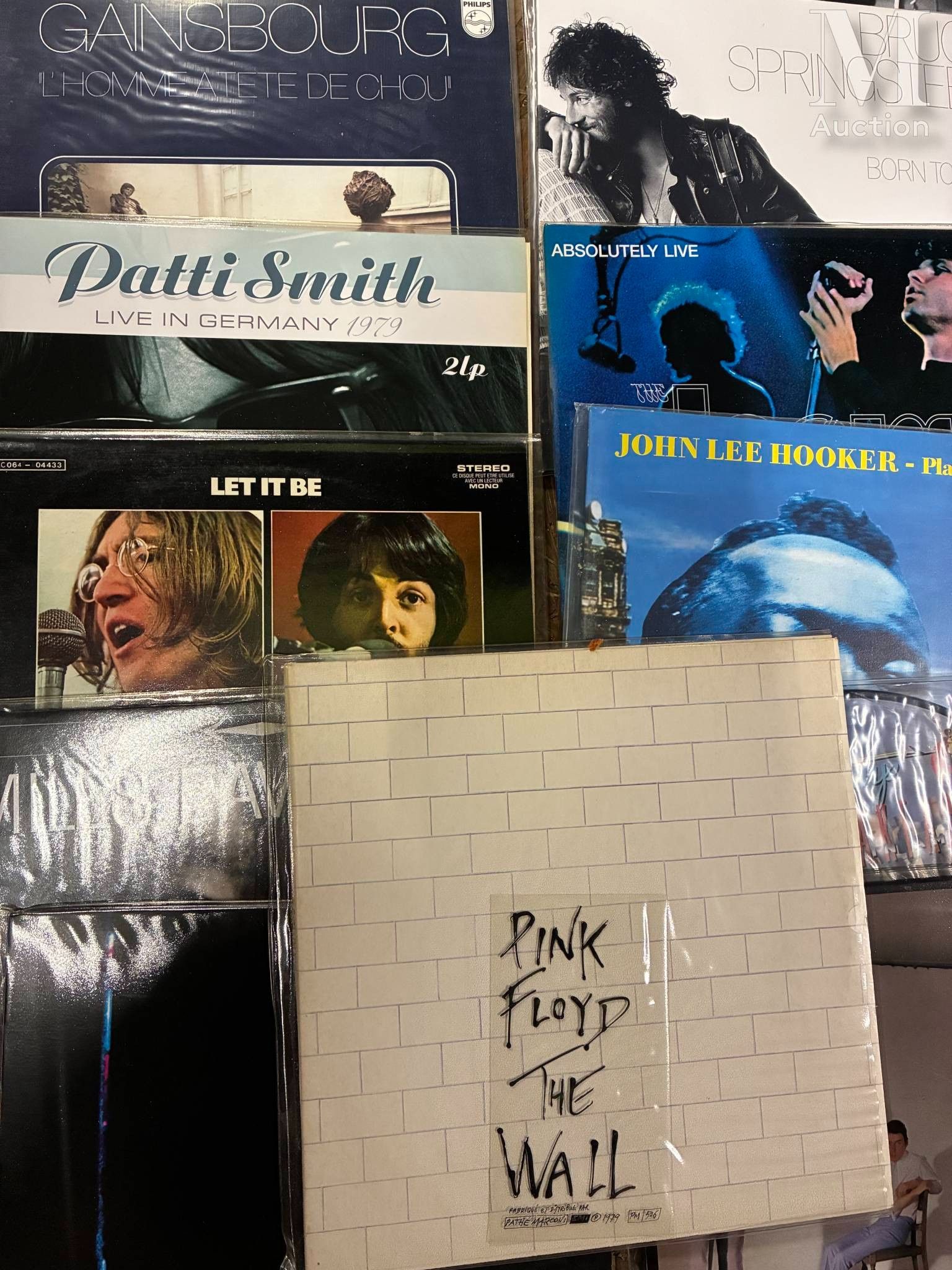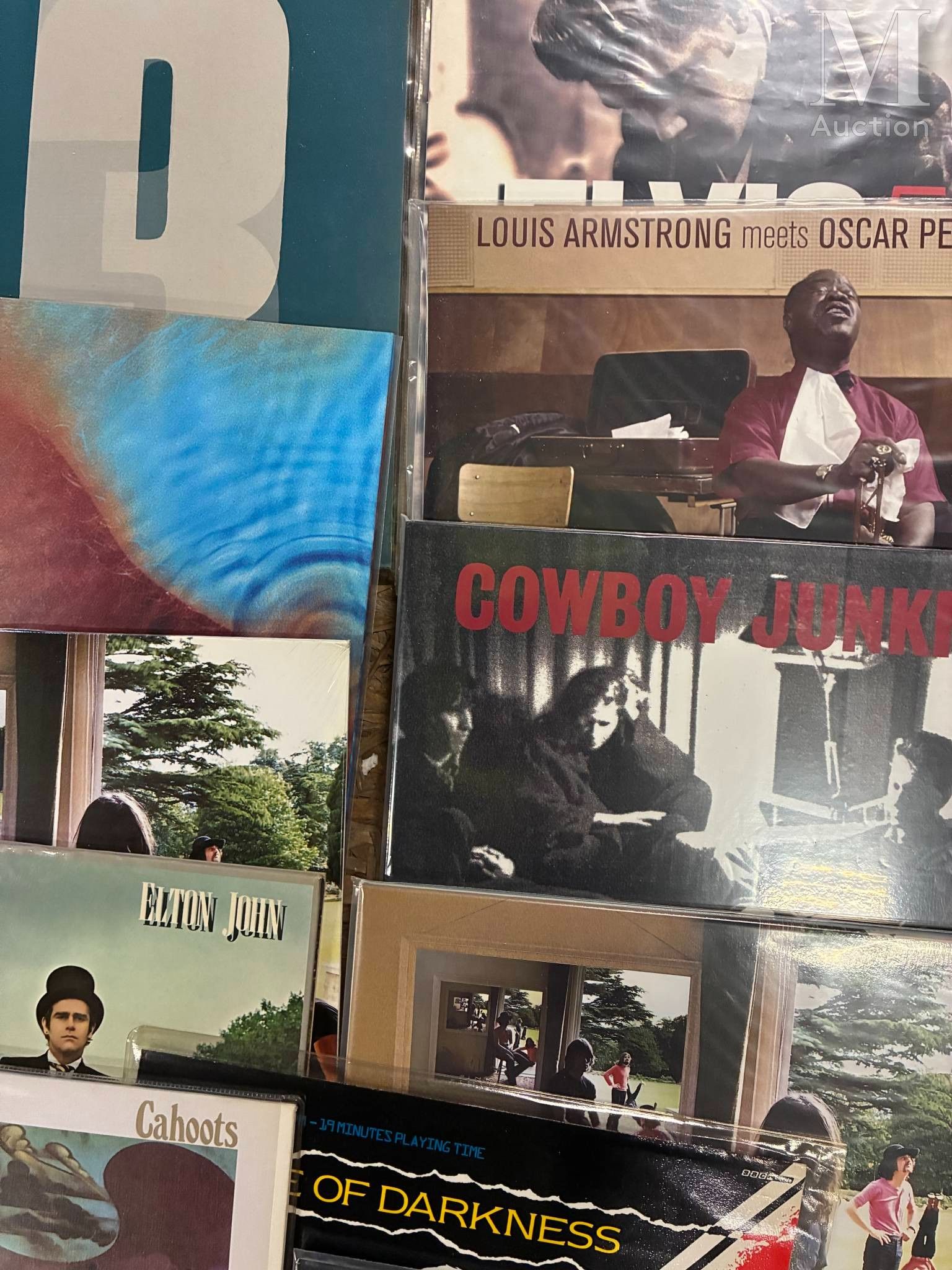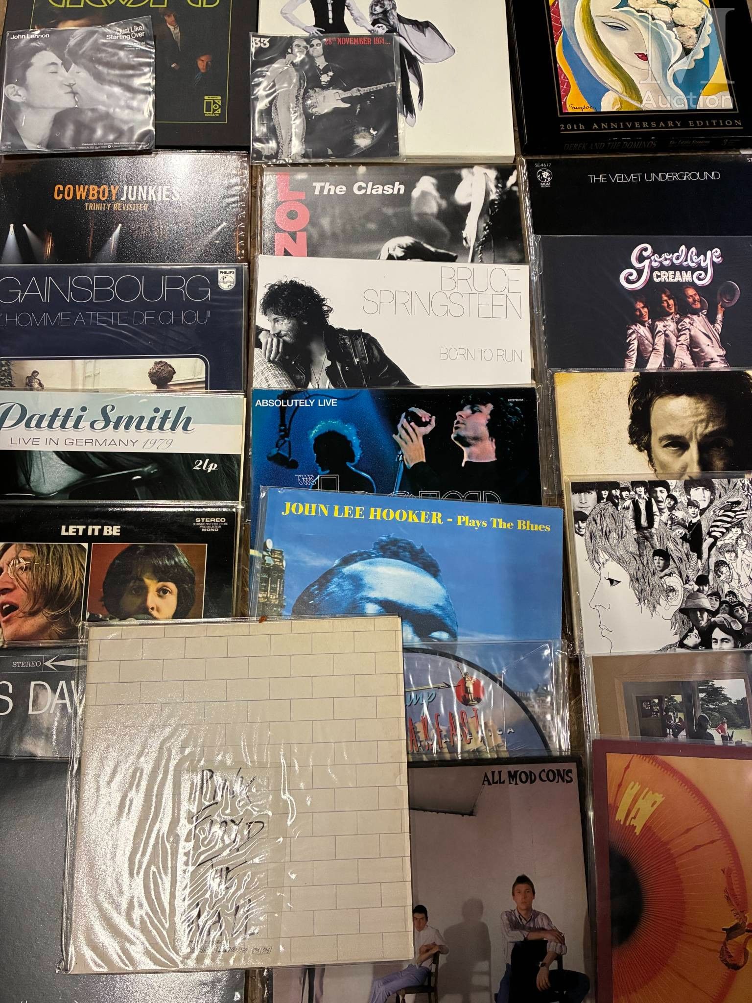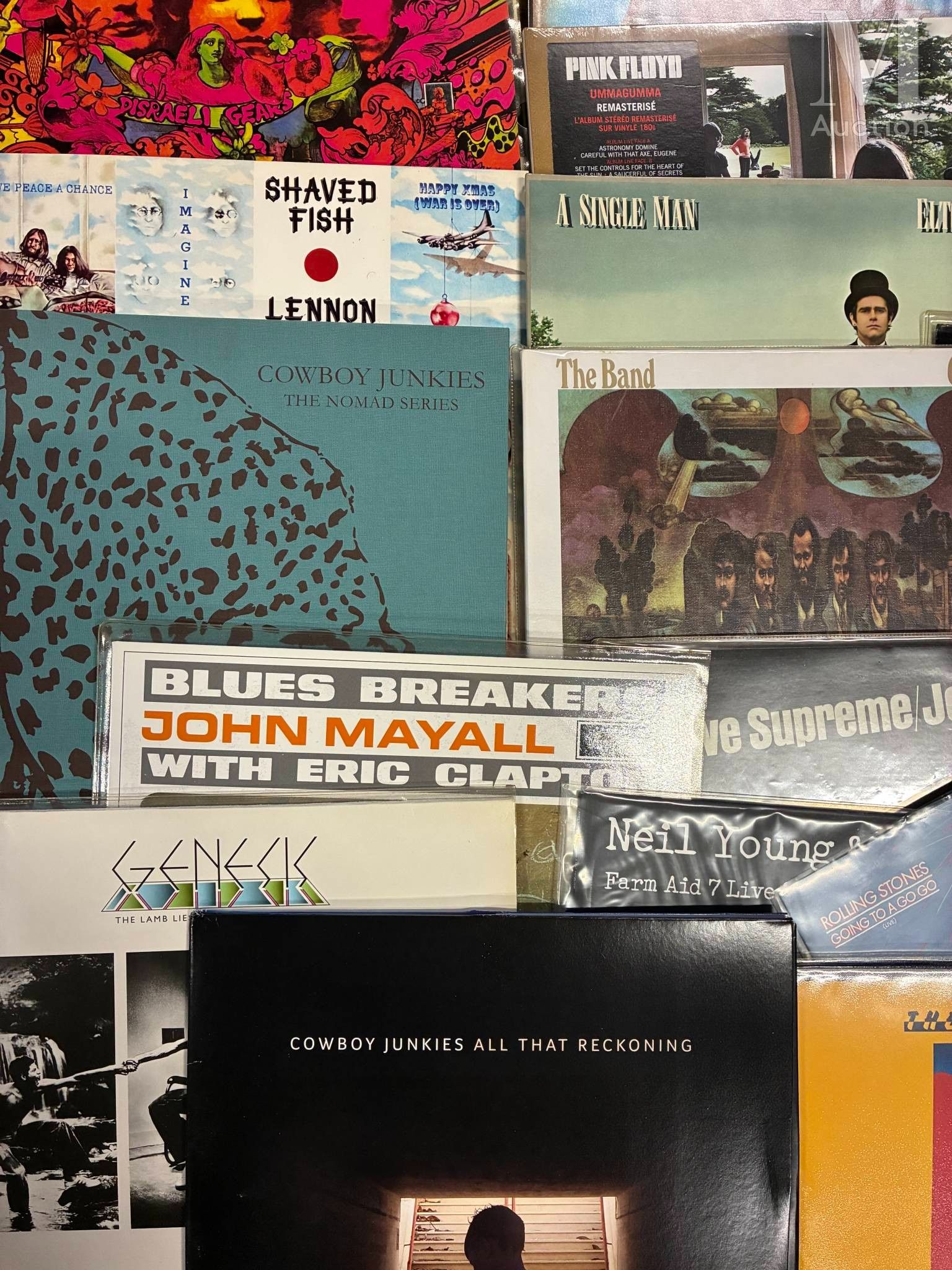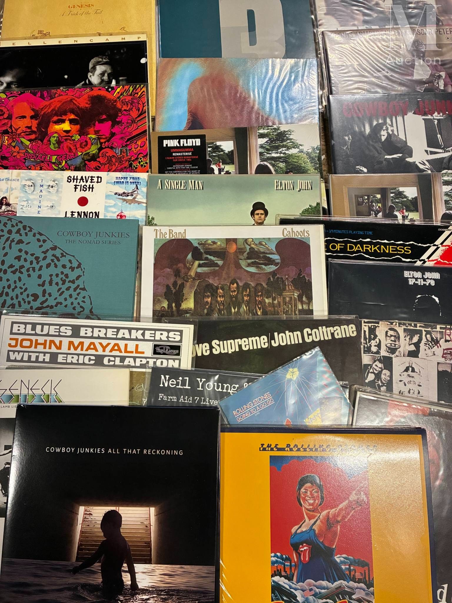 A large lot of 43 x 33 rpm records, three boxed sets and two 45 rpm records by the greatest Pop / Rock groups and artists: The Beatles, Rolling Stones, Doors, Fleetwood Mac, Genesis , Elton John, The Velvet underground...