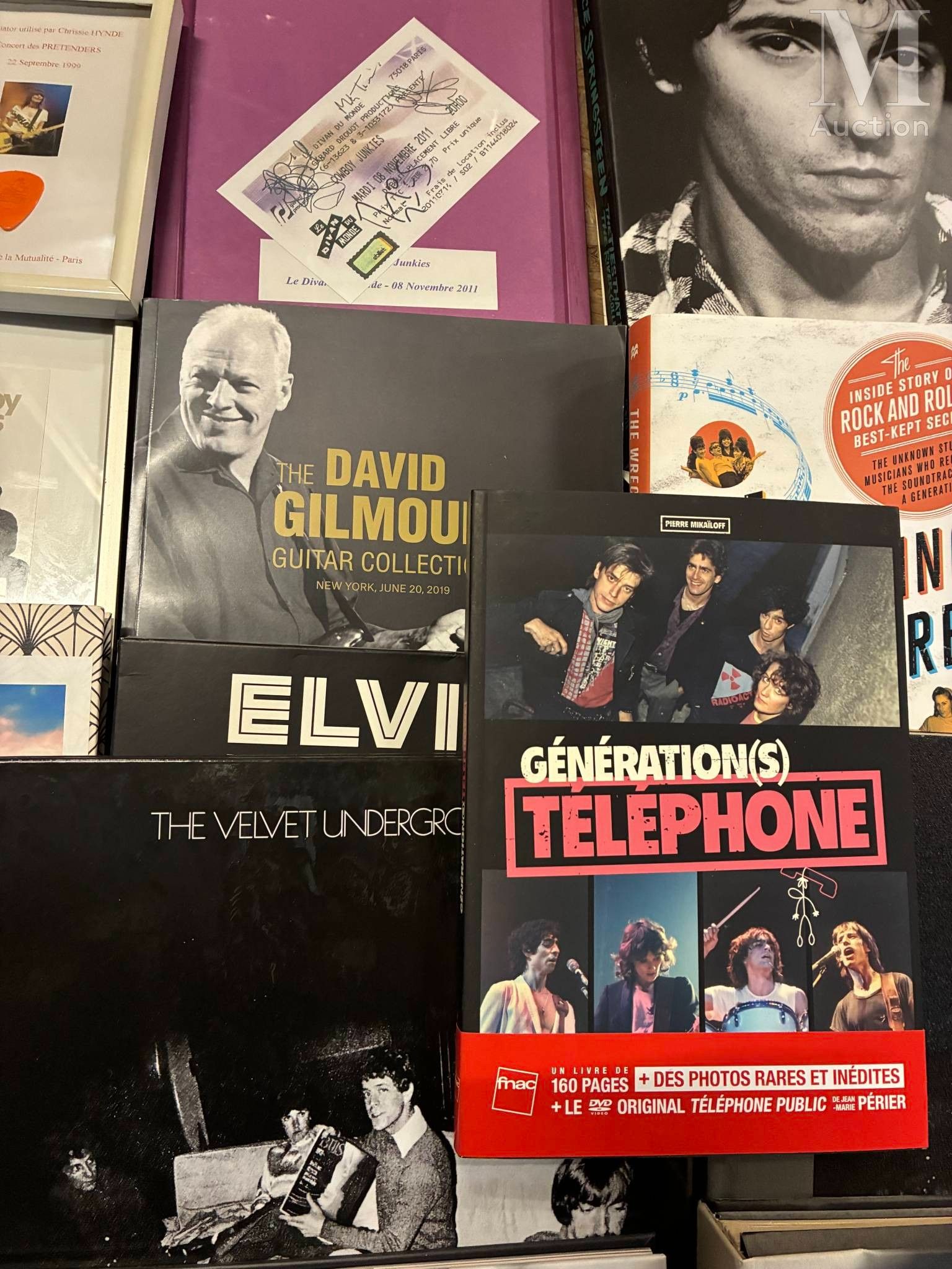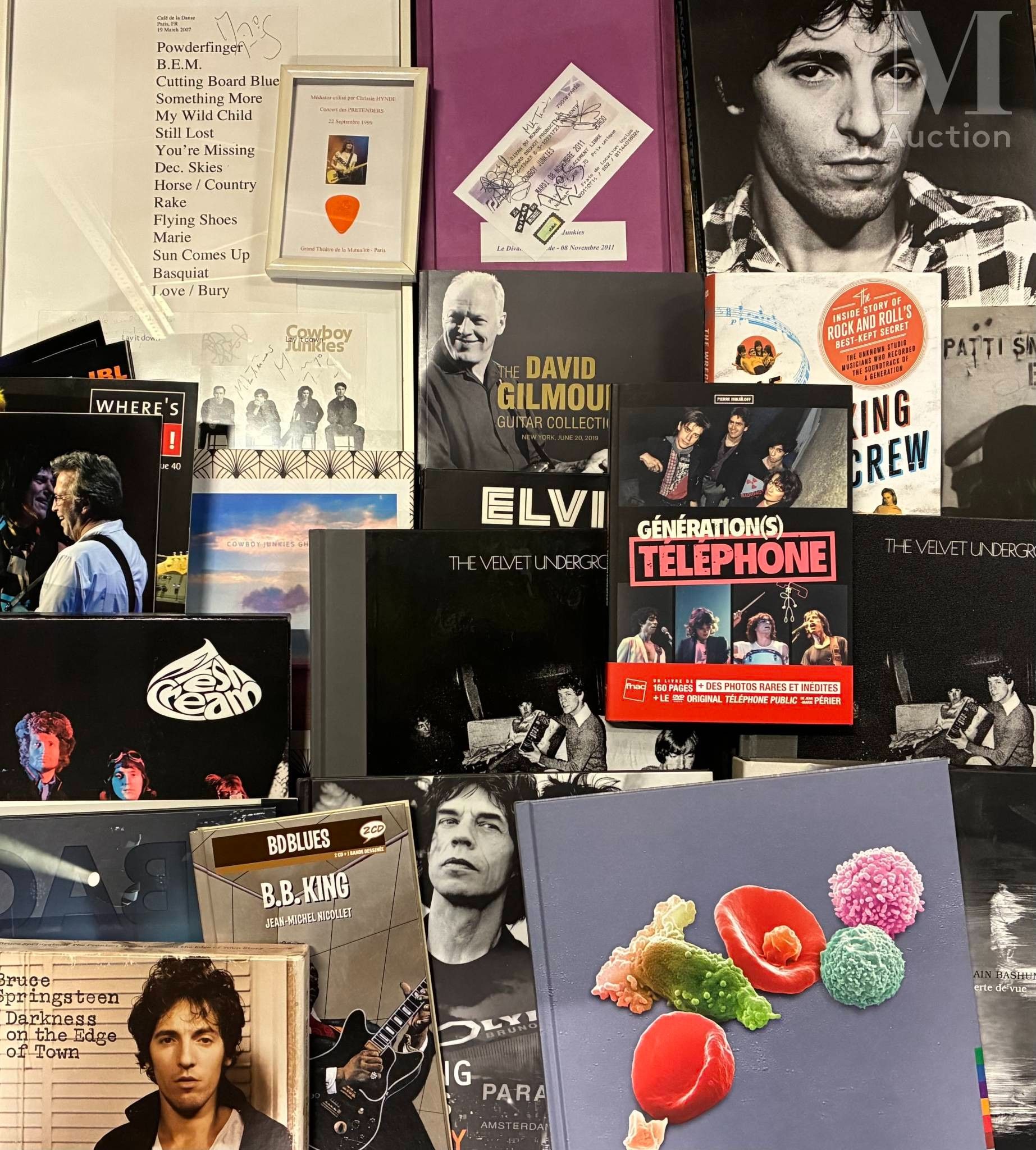 Various books on famous artists and bands: Springsteen, Gilmour, Patti Smith, Elvis, Baschung...