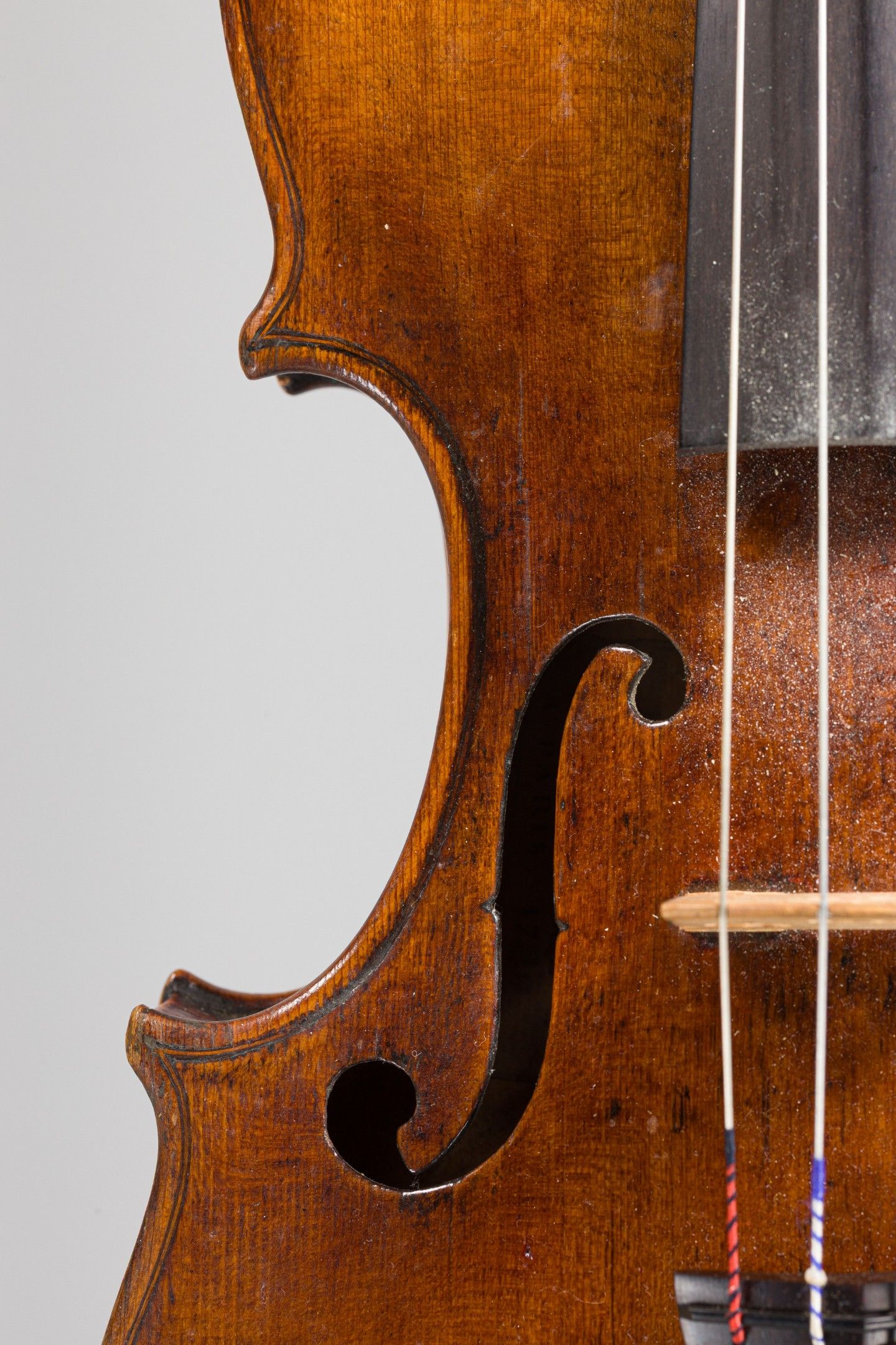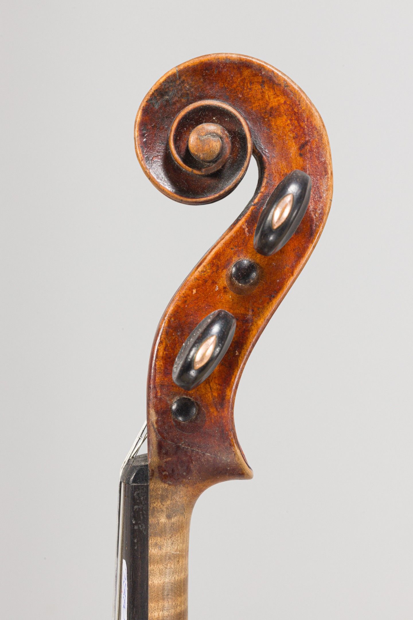 Violin by Jacques BOQUAY, made in Paris around 1720; labelled Jacques Bocquay. Head and top replaced and very much restored, with core piece. 357mm. [VRVI2512_088-VREXP1]