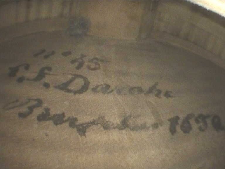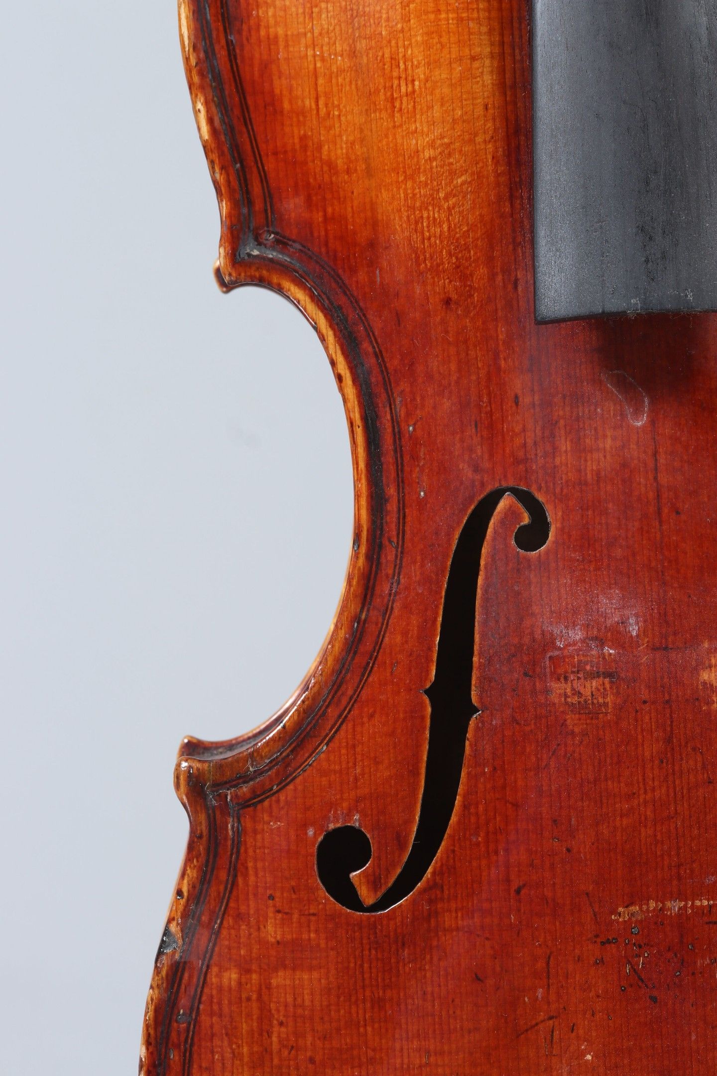 Violin by François DARCHE, made in Brussels in 1852 in the Maggini model, numbered 45; bearing an apocryphal Maggini label and the signature N°45 F. Darche Bruxelles 1852 on the top and back. Condition: some restorations on the table. 358mm. This instrument is more than 100 years old. [VREXP1]