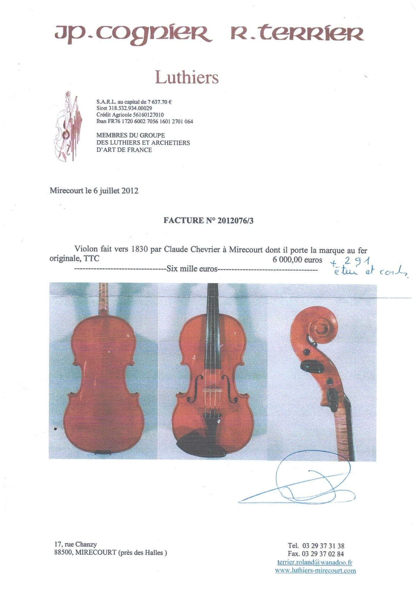 Premium CLAUDE CHEVRIER (1829-1913) Violin made in Mirecourt around …