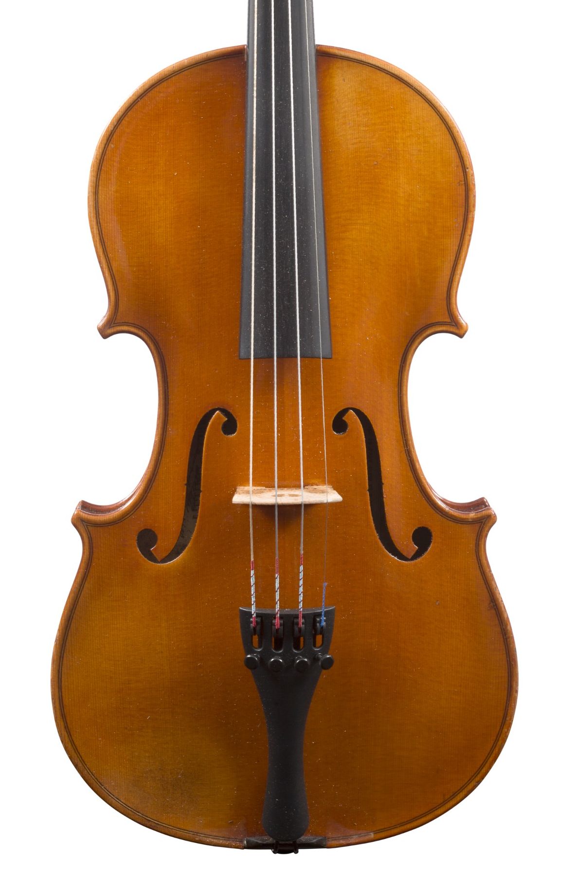 Bearing original signed label, "Lutherie artistique Entièrement fait à la main" label and iron mark under the button