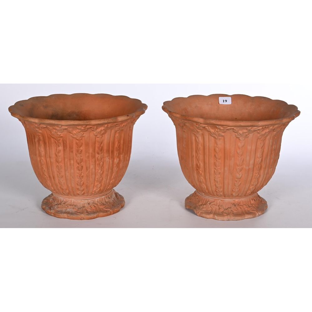 Pair of terracotta vases on pedestal (small chips). End of 19th century, beginning of 20th century. H.17 Diam.22.