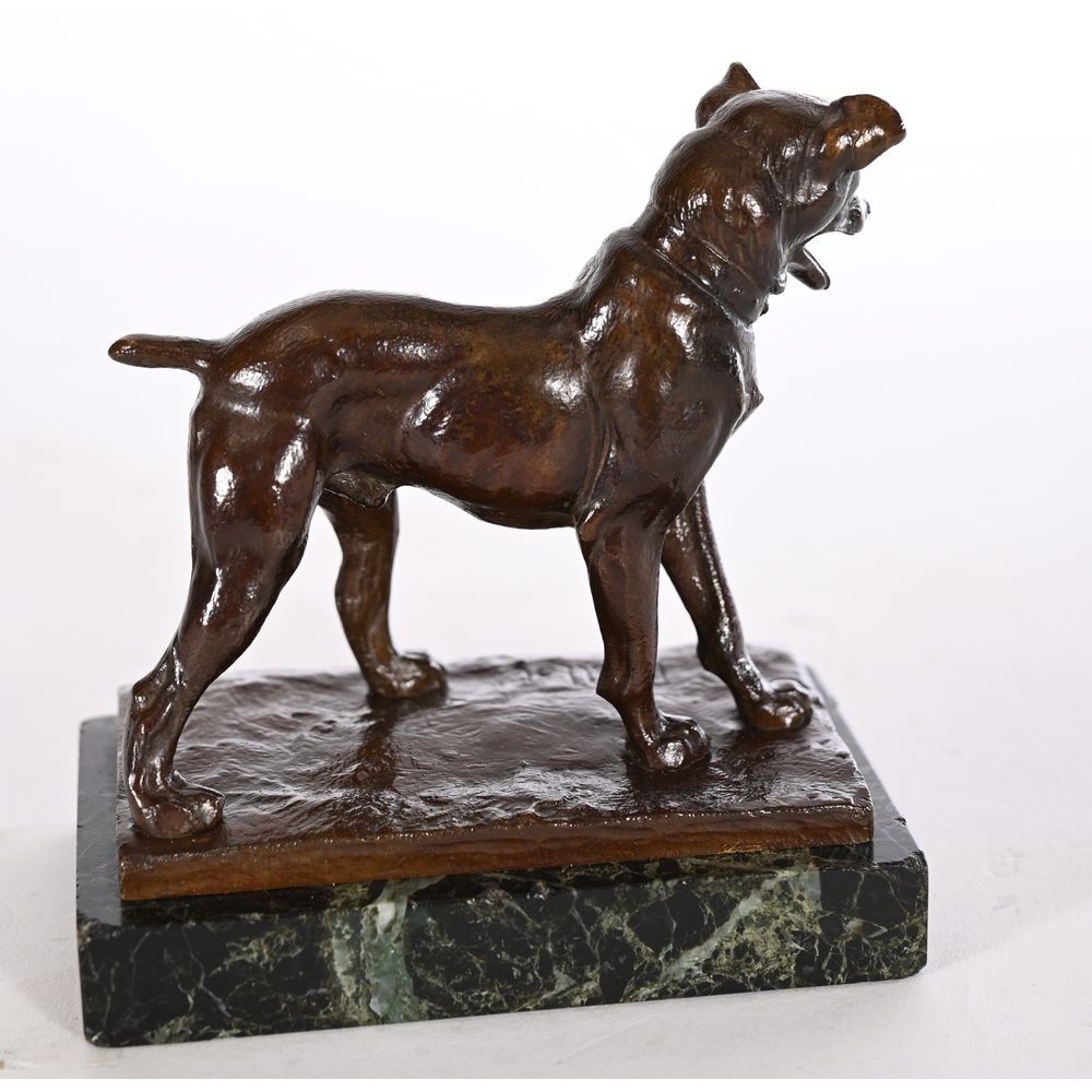 PAILLET Charles (1871-1937). "Ratter dog". Bronze with brown patina, signed on the terrace. Beautiful old sand casting. Sea foam marble base. L.8,5 H.8,5 without the marble.