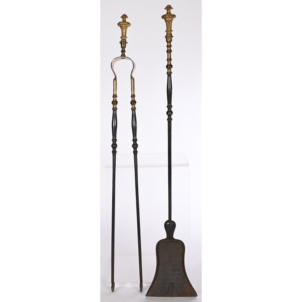 LOUIS XVI CHIMNEY SET in bronze and iron.