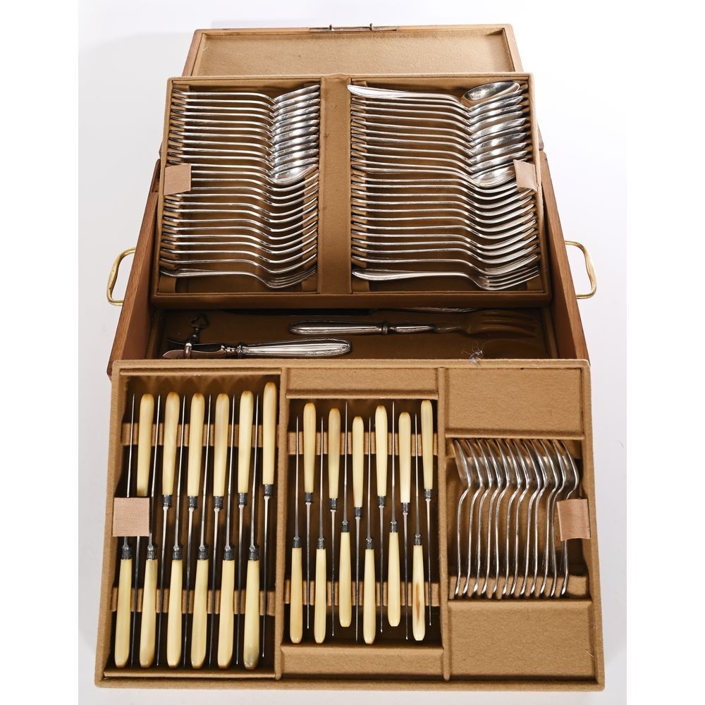 ART DECO silver-plated 92-piece flatware set with stylised f…