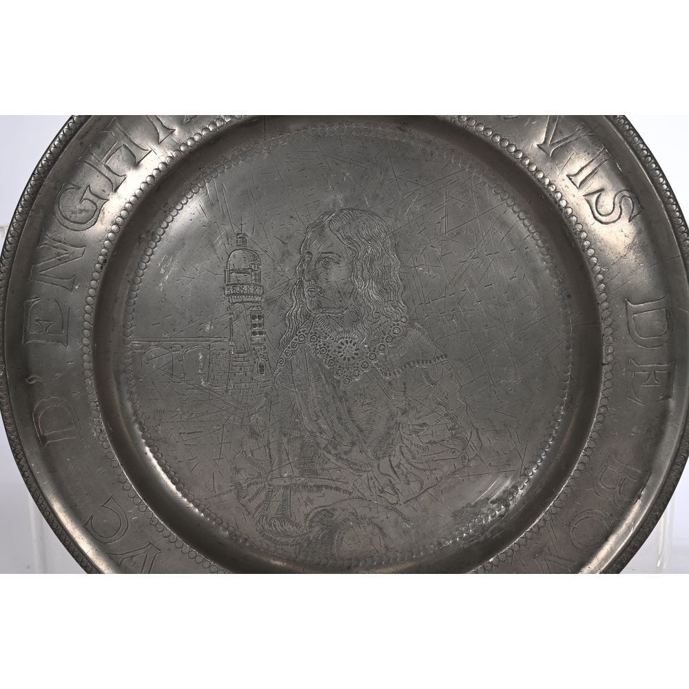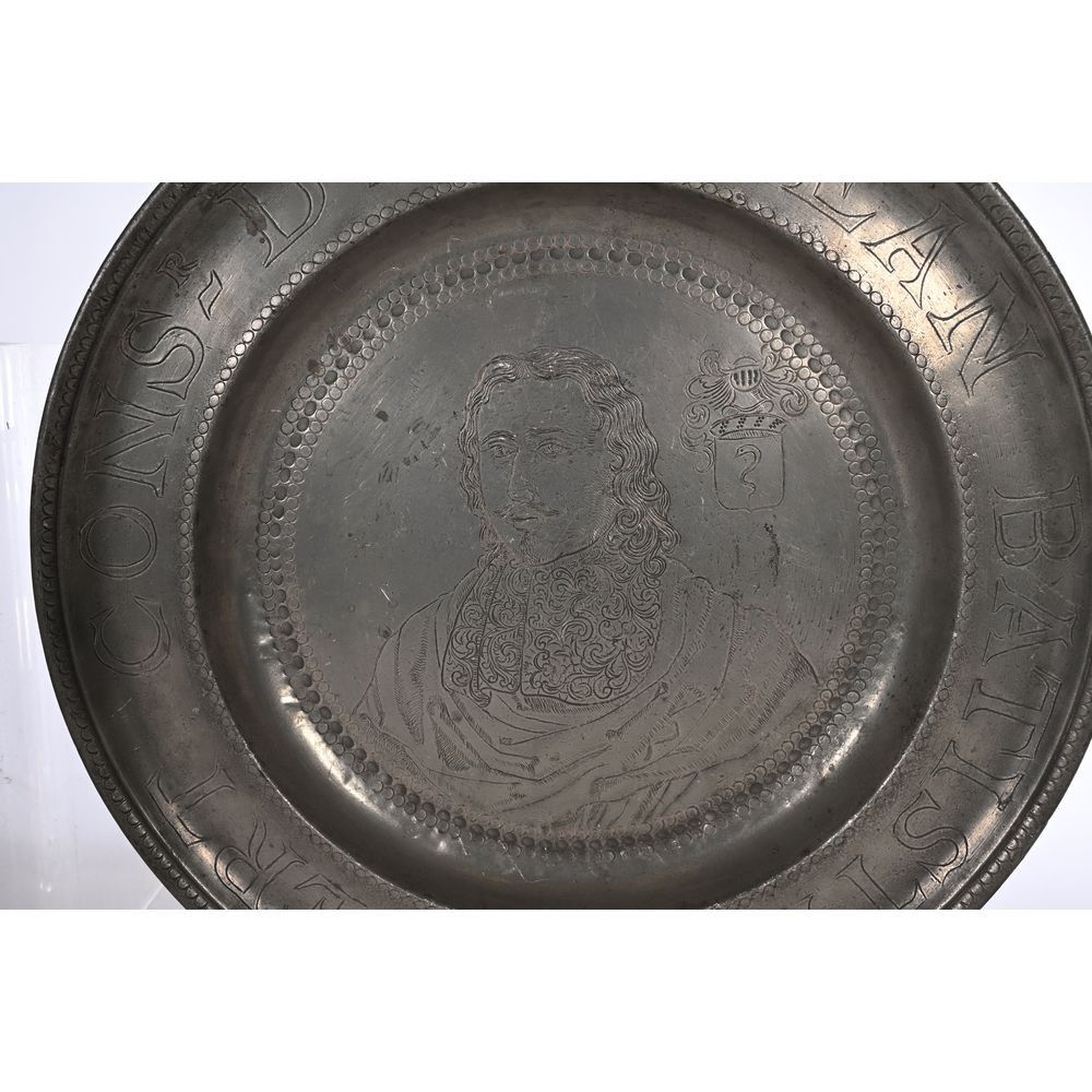 PAIR OF NORTHERN PEIN PLATES nicely engraved with figures representing the Duke of Enghien, Louis de BOURBON and the Conseiller d'Etat Jean-Baptiste COLBERT. 18th-19th century. Diam.33.