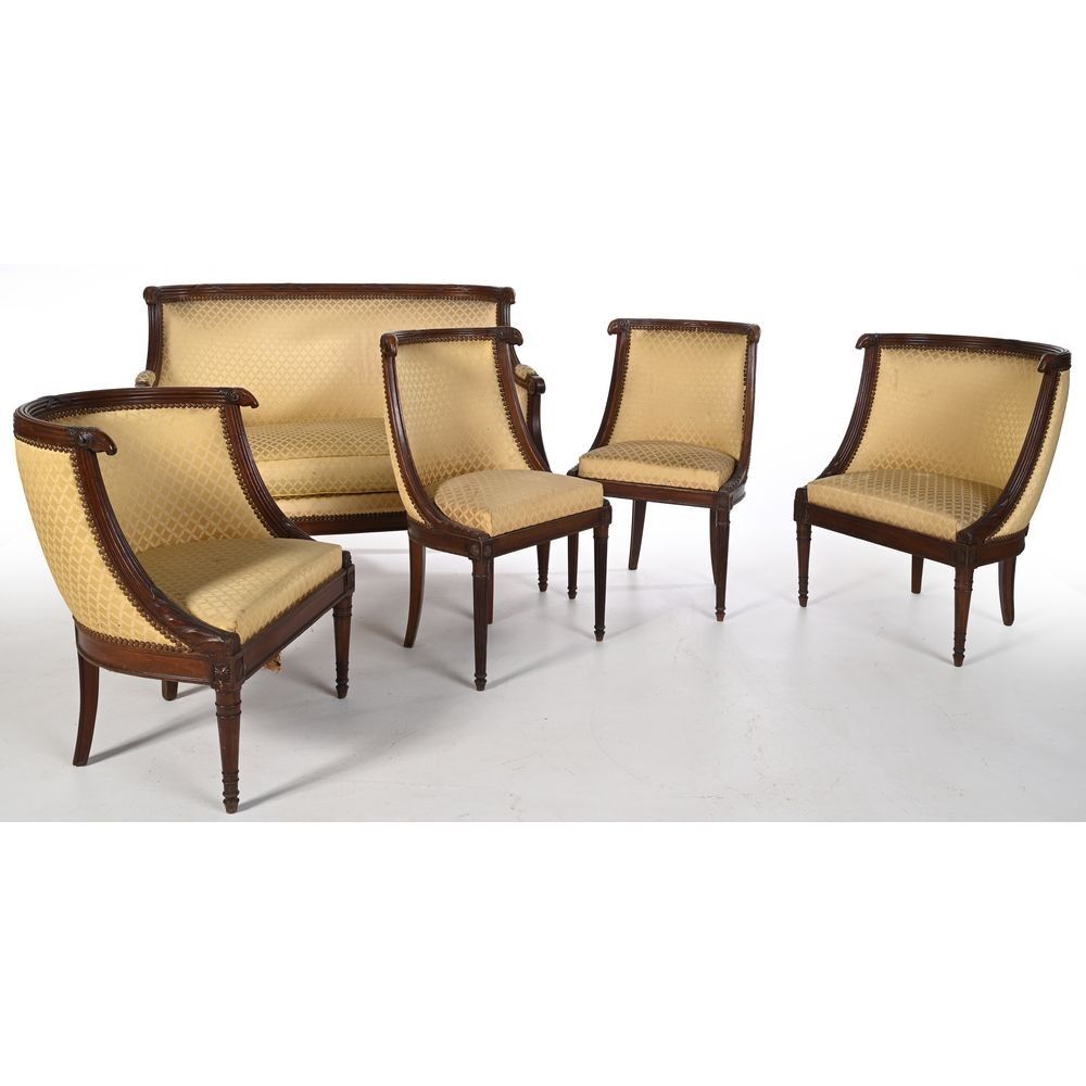 Premium LOUIS XVI SITTING ROOM SET in mahogany and mahogany veneer.