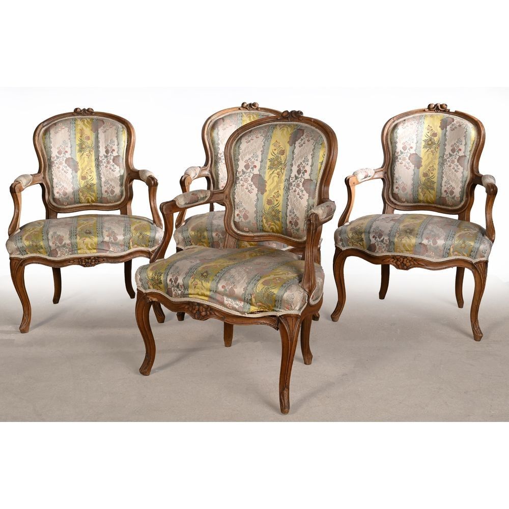 SET OF 4 LOUIS XV CABRIOLE CHAIRS in natural wood with carve…