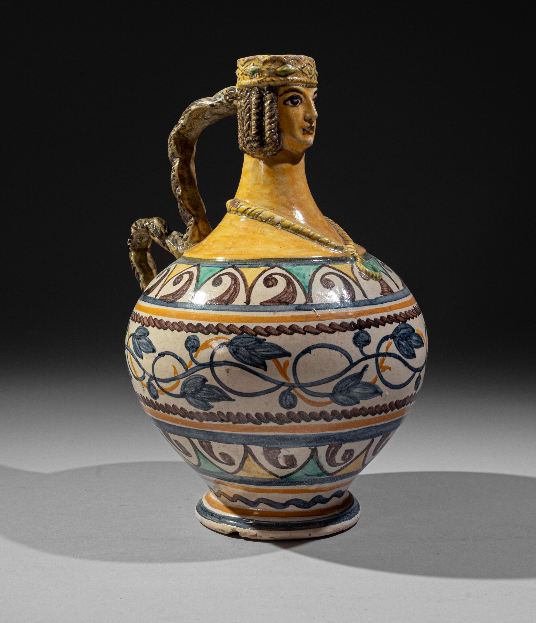 Spain Anthropomorphic earthenware jug with polychrome decora…