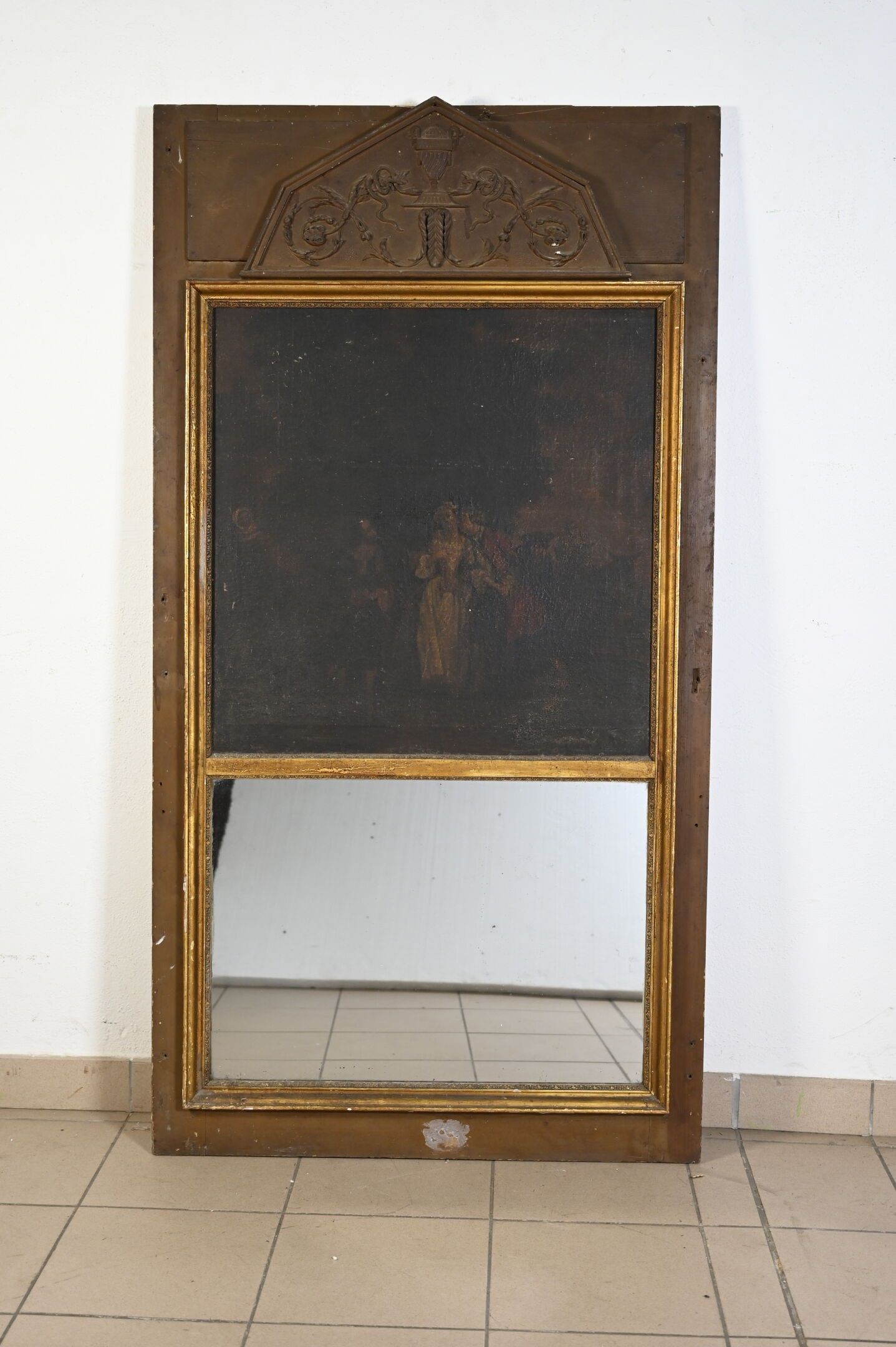 Trumeau in lacquered and gilded wood, the canvas decorated with a gallant scene