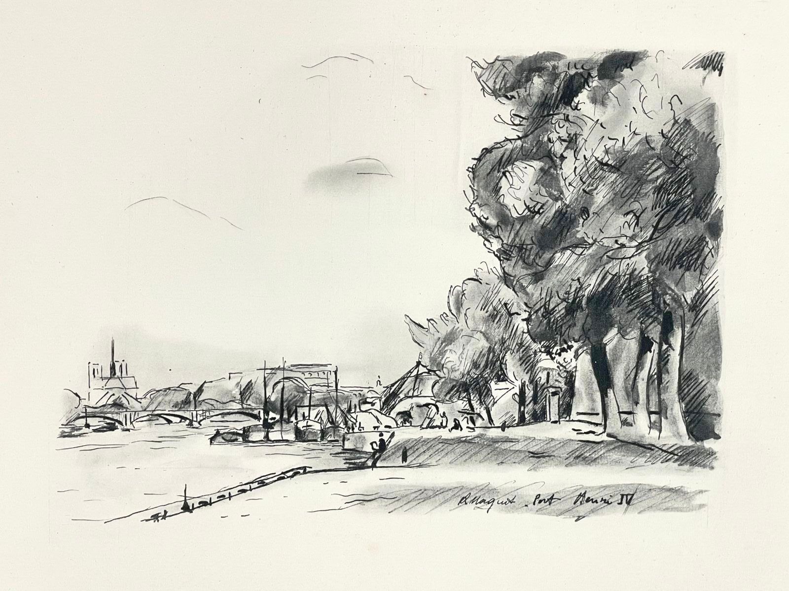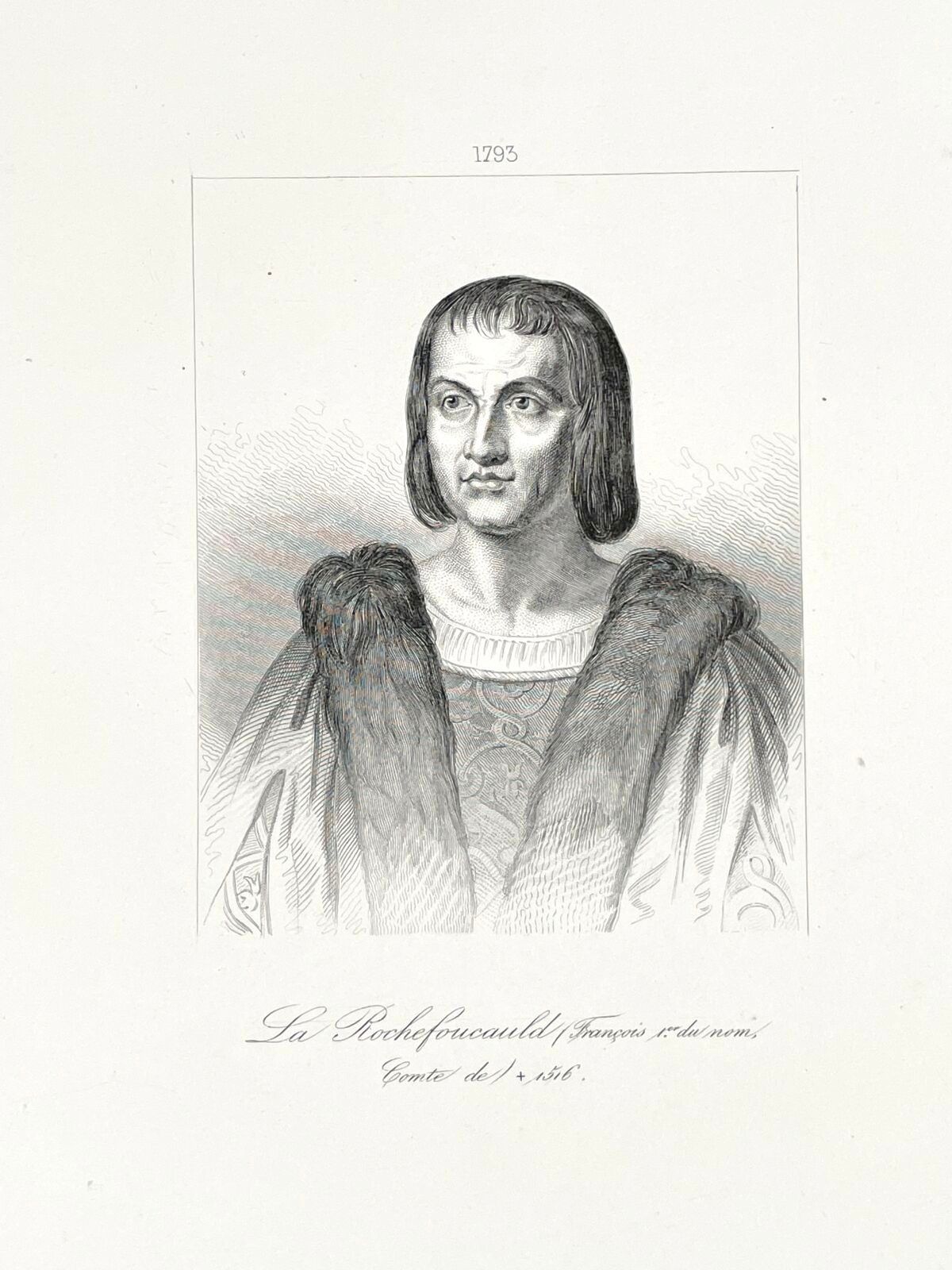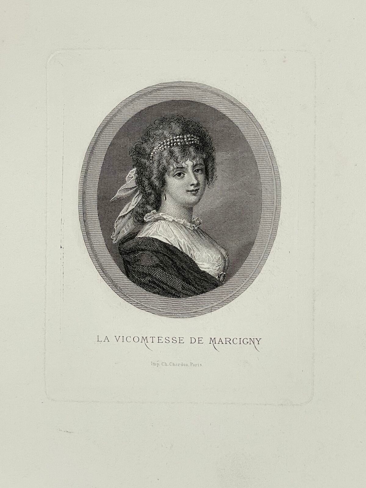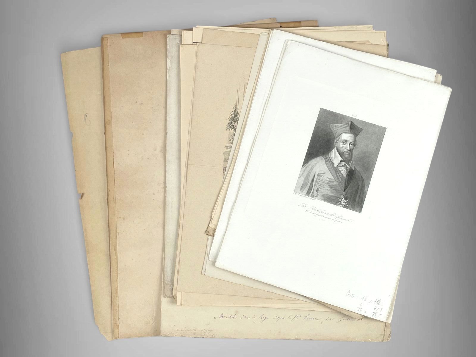 Batch of approximately forty engravings and reproductions containing in particular portraits of La Rochefoucauld, Ambroise Thomas, the viscountess of Marigny, reproductions after Marquet...