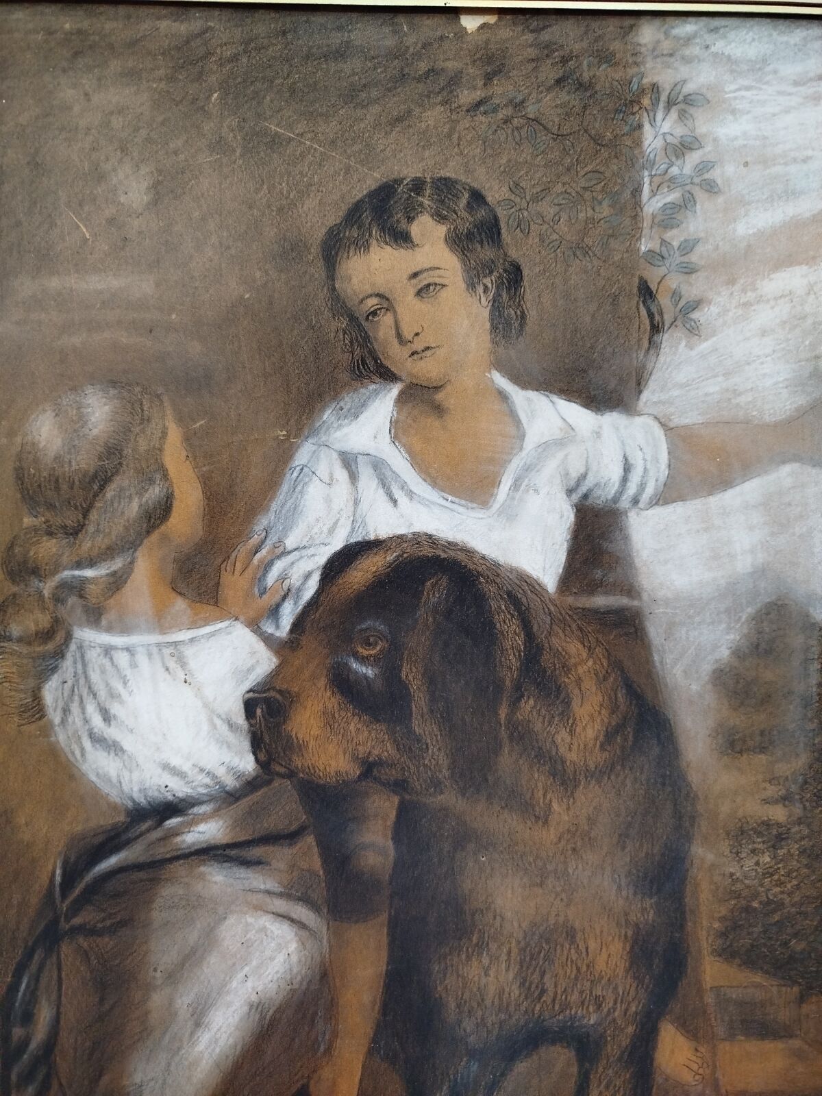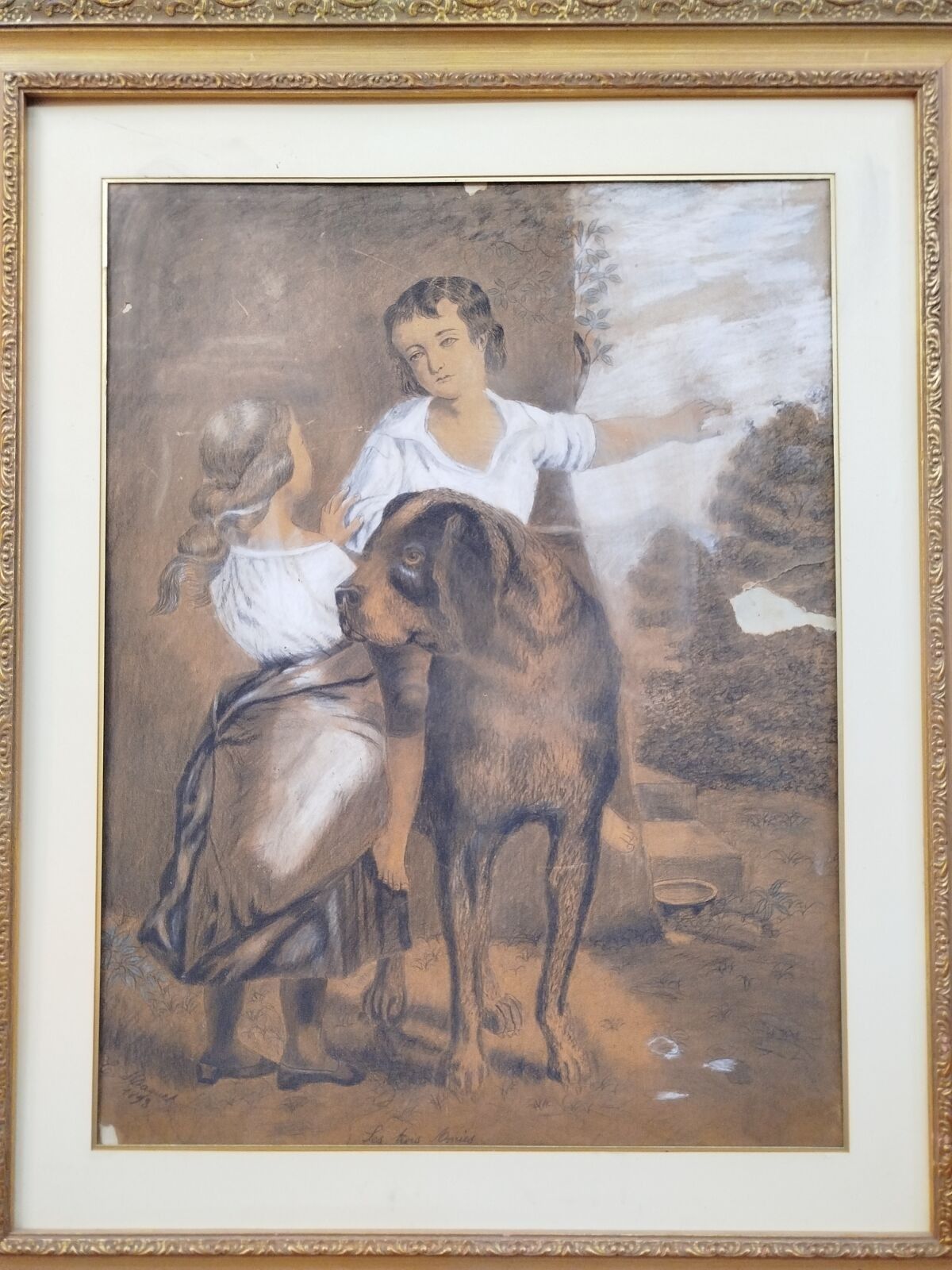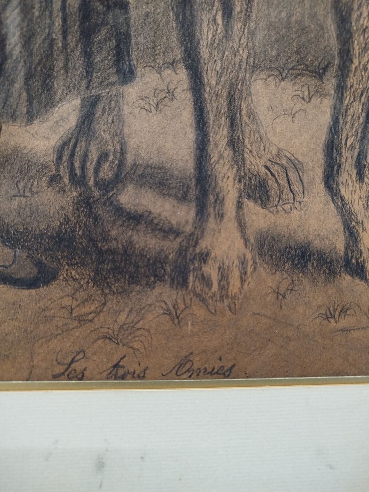 C.M DAGUET The Three Friends Charcoal and gouache, signed an…